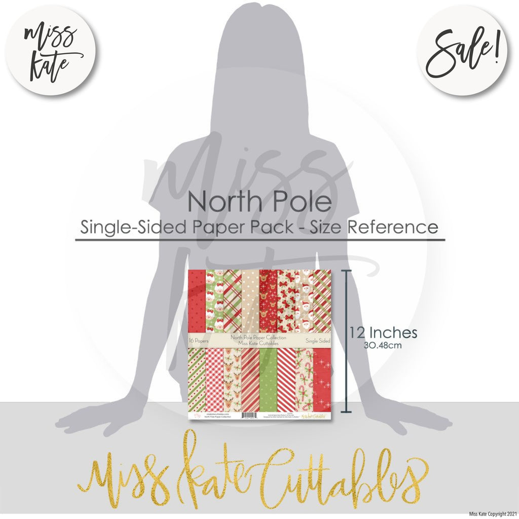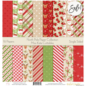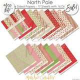 The North Pole paper pack has a wide variety of Patterns including Polka Dots, Stripes, Stars, Plaid, Holly Berry, Stars, Reindeer, Snowflakes,
