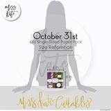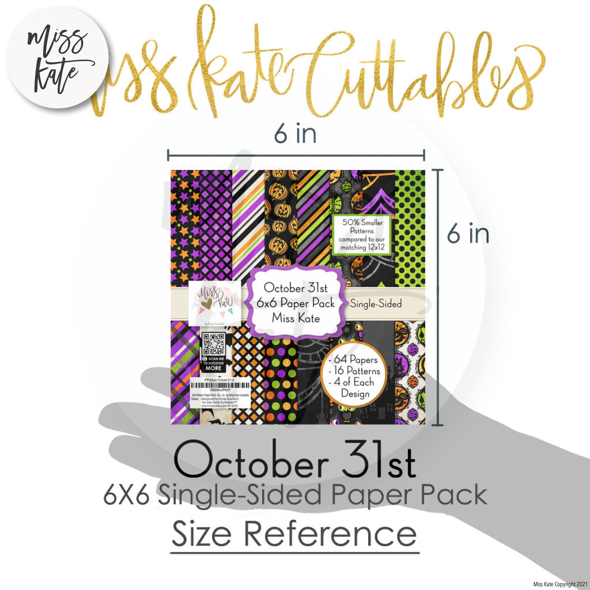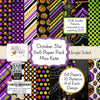 The Halloween Night paper pack has a wide variety of Patterns including Polka Dots, Stripes, Plaid, Halloween, Trick or Treat, October 31st, Bats, Cats, Candy Buckets, Candy Corn, Eyeballs, Ghosts, Jack O Lantern, Spiderwebs, and Witch Legs. Halloween Trick or Treat Theme