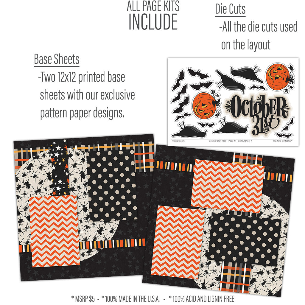 Our Page Kits include proprietary Miss Kate Pattern Paper and Miss Kate Die Cuts.