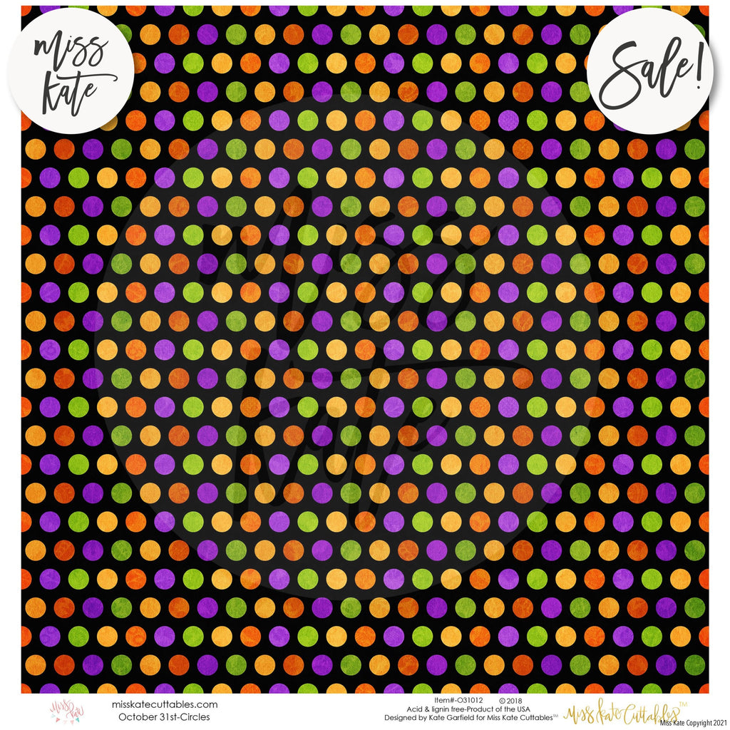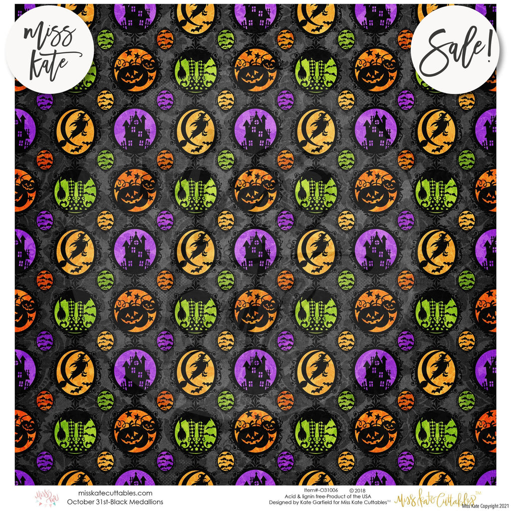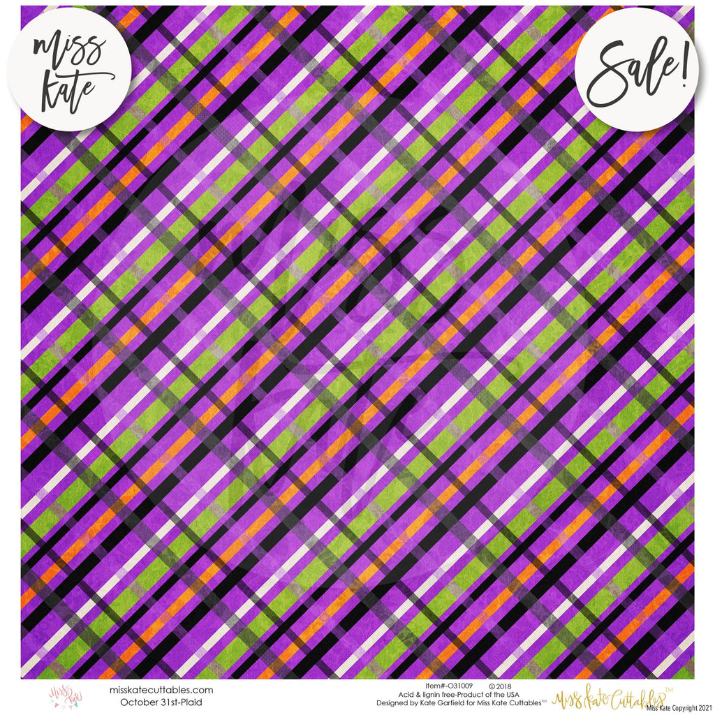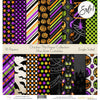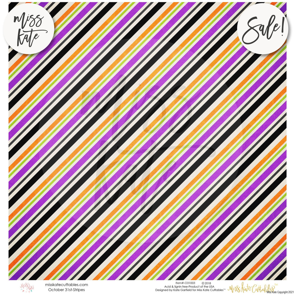 The October 31st paper pack has a wide variety of Patterns including Polka Dots, Stripes, Plaid, Halloween, Trick or Treat, October 31st, Bats, Cats, Candy Buckets, Candy Corn, Eyeballs, Ghosts, Jack O Lantern, Spiderwebs, and Witch Legs. Halloween Trick or Treat Theme