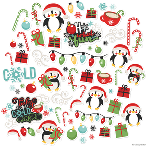 The Oh What Fun DIE CUTS have a wide variety of designs, including "Baby it's Cold Outside" "Oh What Fun" "Cold" Titles, Penguins, Hot Cocoa, Candy Canes, Christmas Lights, Snowflakes, Presents, Ornaments.