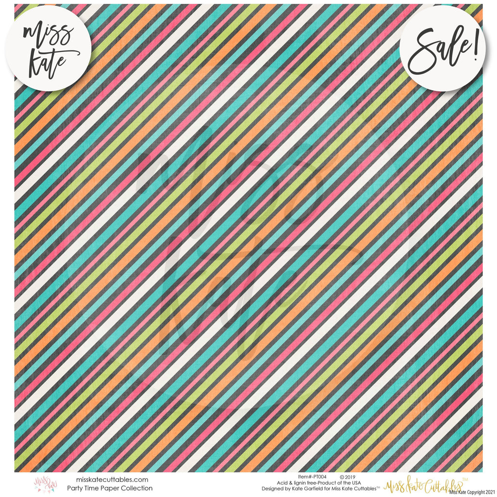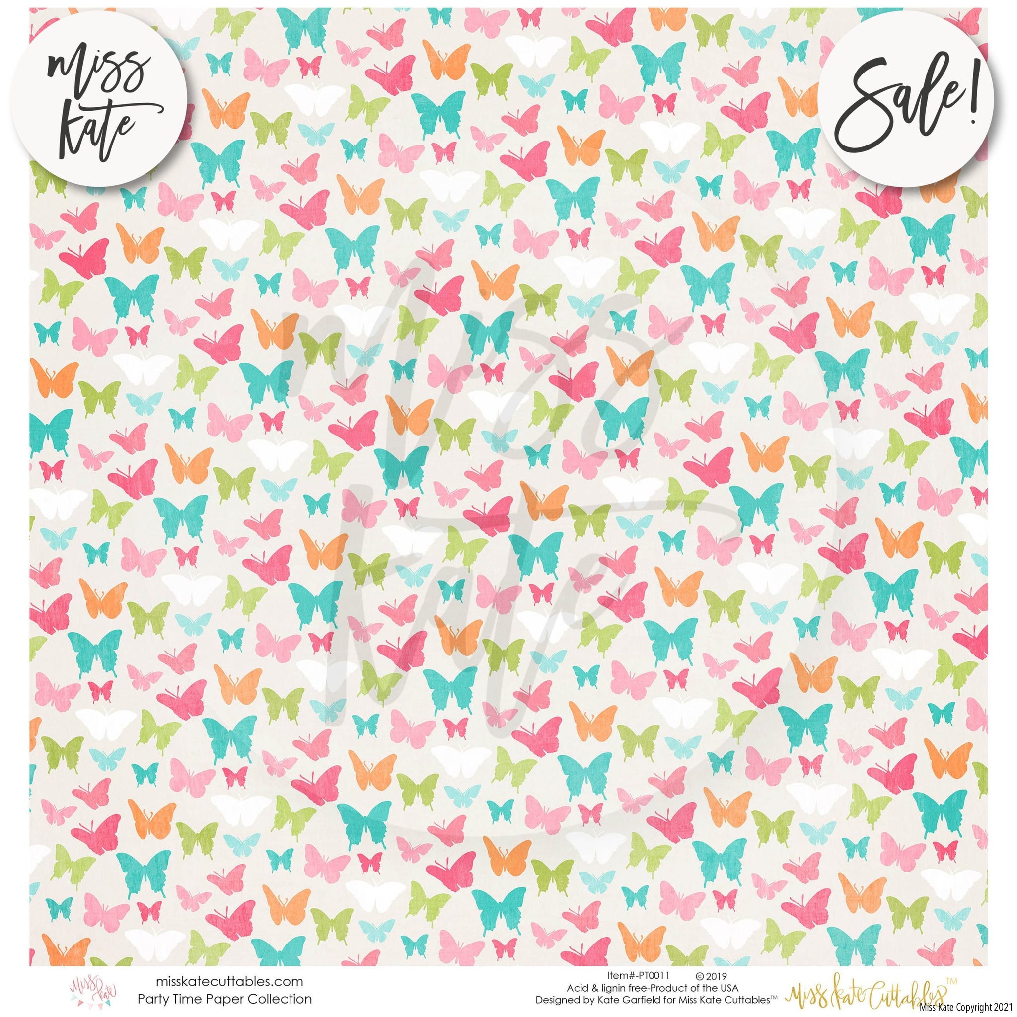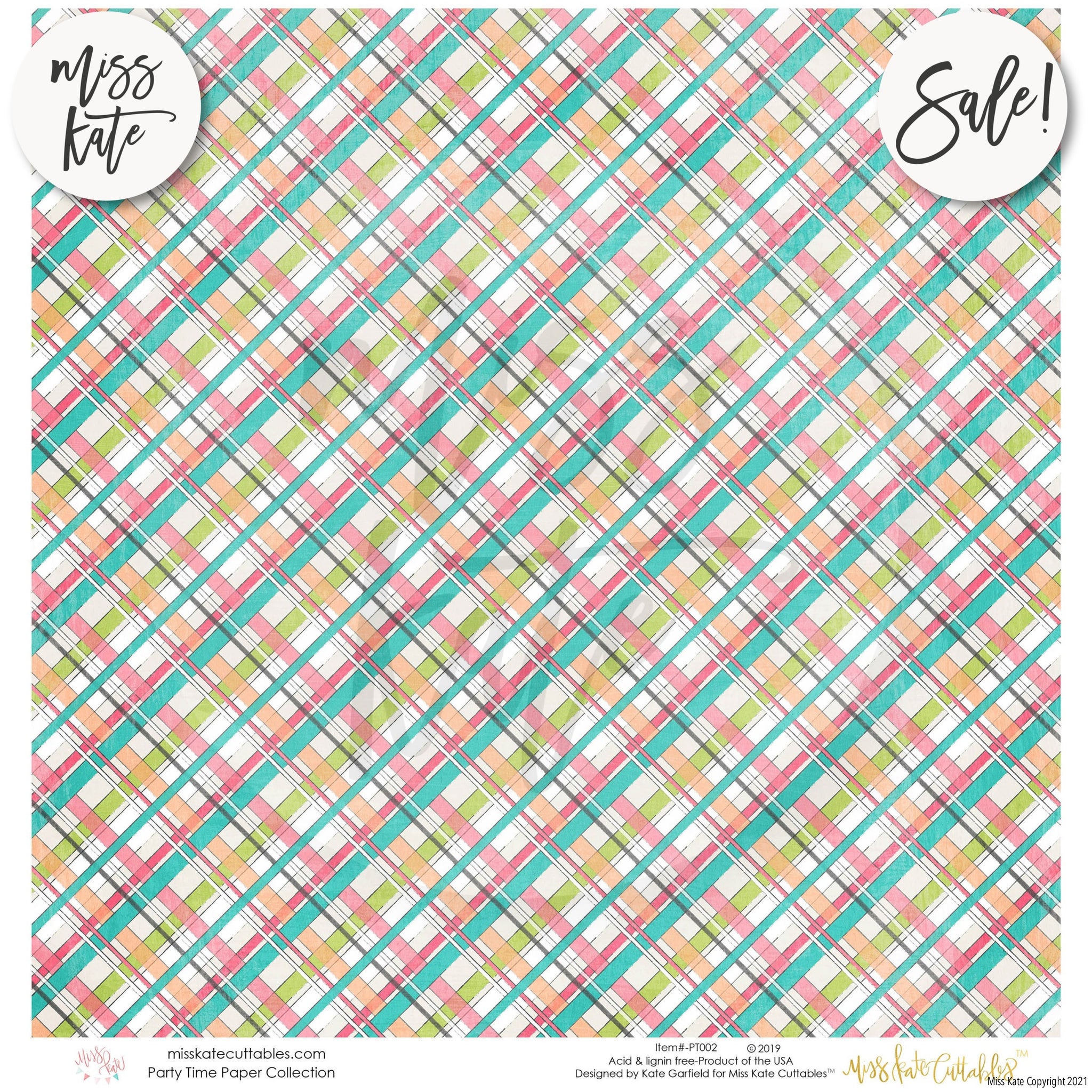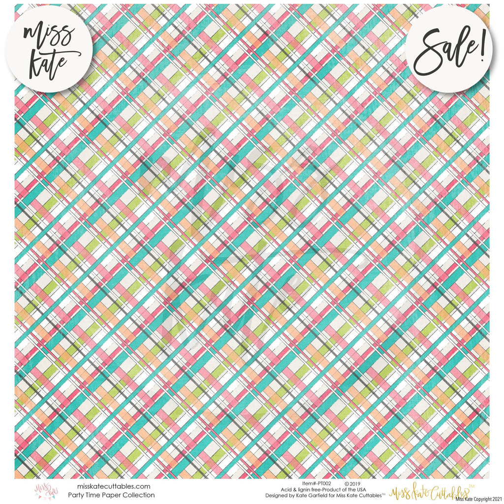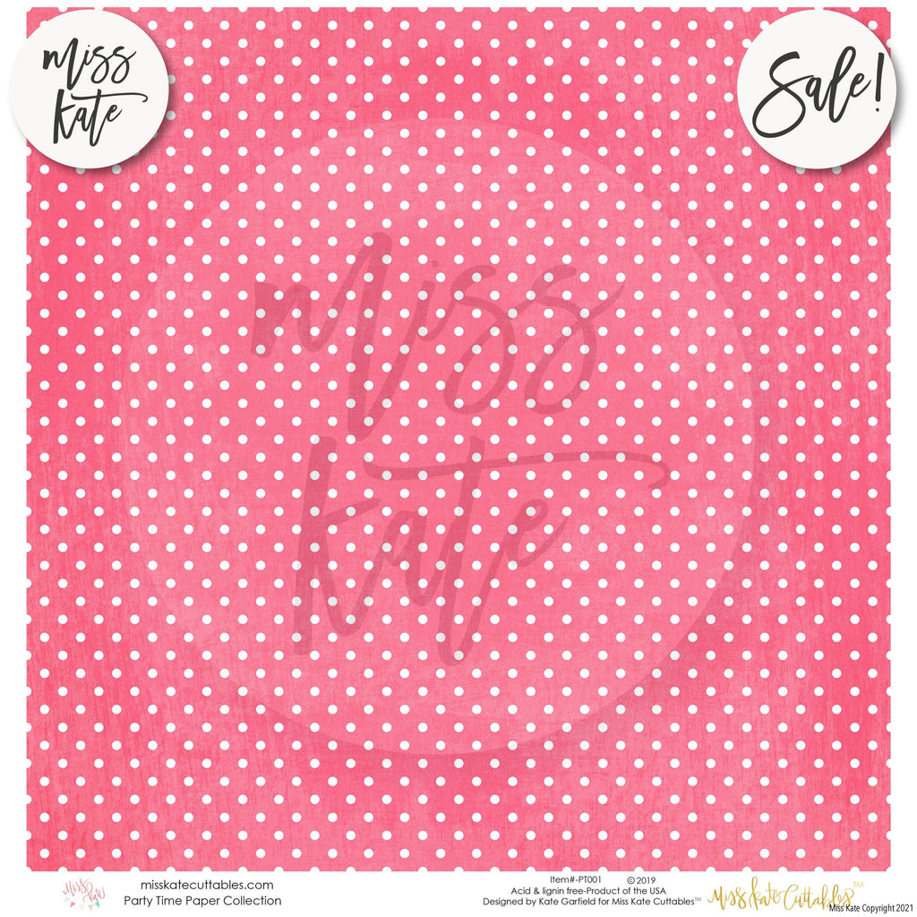 The Party Time Paper Pack has a wide variety of Patterns including Polka Dots, Stripes, Plaid, Balloons, Hearts, Flowers, Butterflies, Confetti, Birthday Cake, Presents, Number Candles, Party Hats, Wrapping Paper, First Birthday, 1 Year Old, Red, White, Pink, Orange, Green, Cream, and Blue. Kids Party Celebrate Theme
