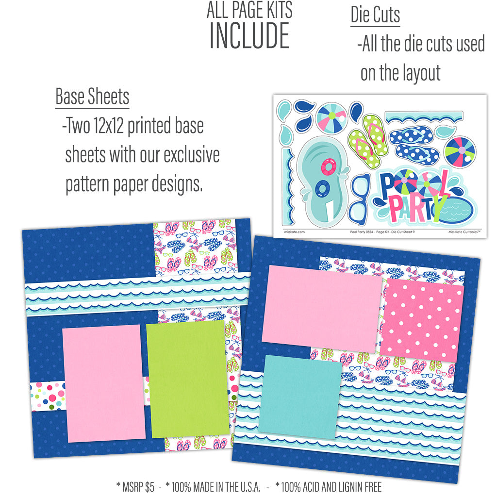 About our Page Kits Our Page Kits include proprietary Miss Kate Pattern Paper and Miss Kate Die Cuts. The cover page features full-color high-resolution pictures of the assembled layouts. Die cuts are left in the sheet and ready for you to easily pop out, this allows you to see them all spread out and helps prevent any accidental loss. These page kits are adorable, easy to do, and at such a great price! We love our Page Kits and think you will too! |
