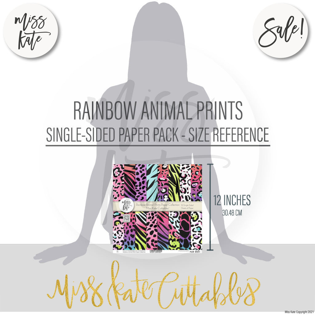 The Rainbow Animal Prints paper pack has a wide variety of Patterns including Rainbow versions of our Leopard, Zebra, Snake, Giraffe, Panther, Leopard, Cheetah, Tiger, Thylacine, Big Cat, Alligator, Crocodile, Tasmanian Tiger.