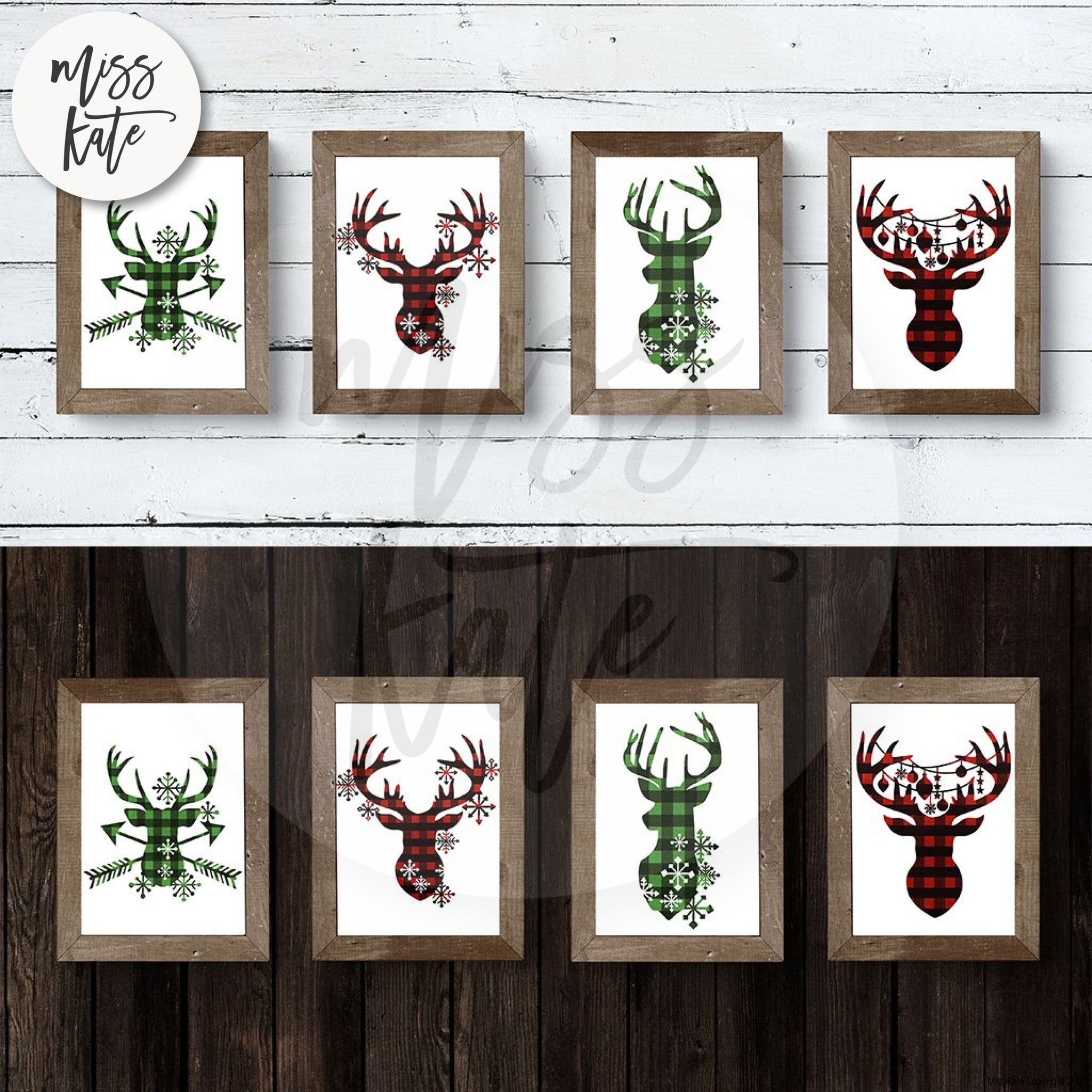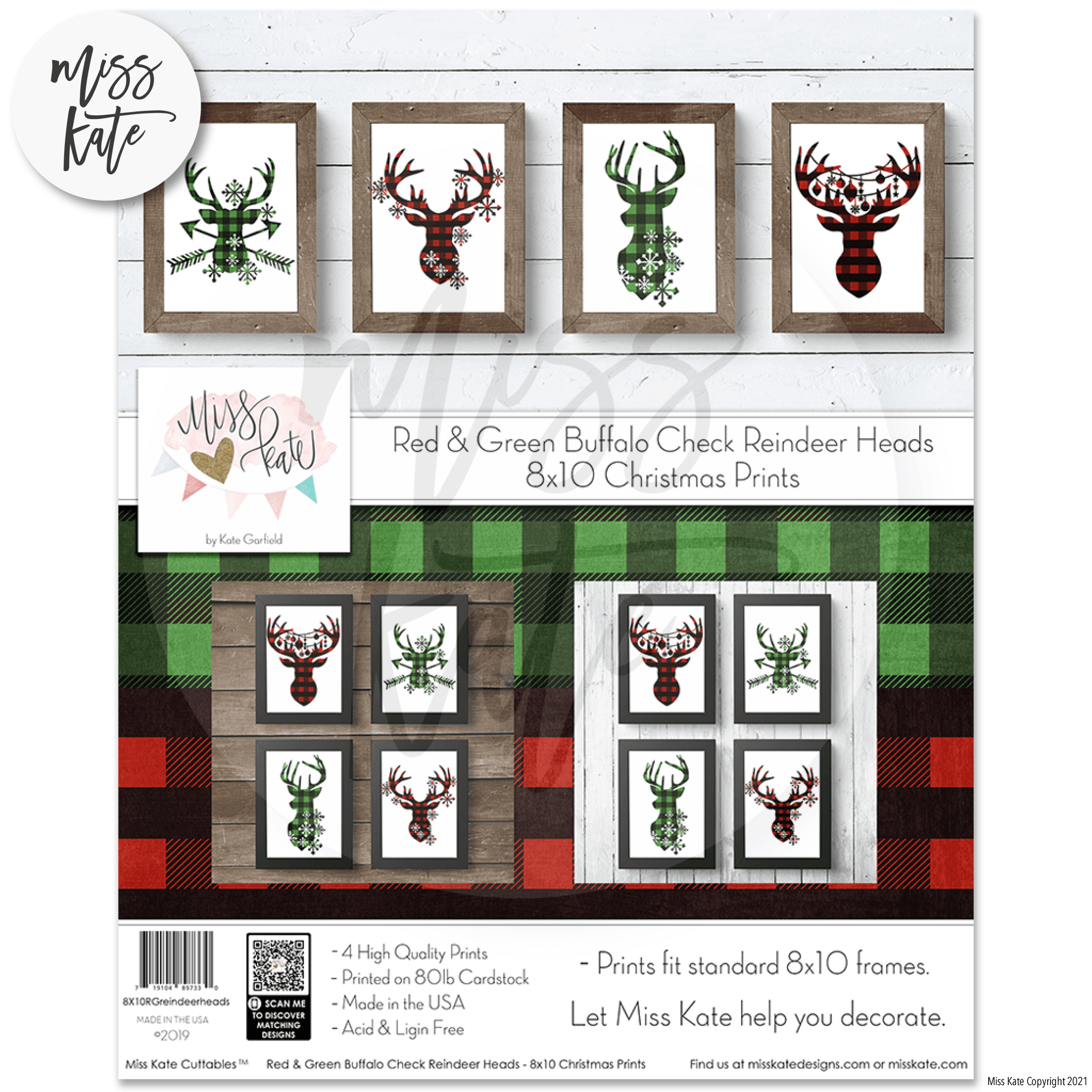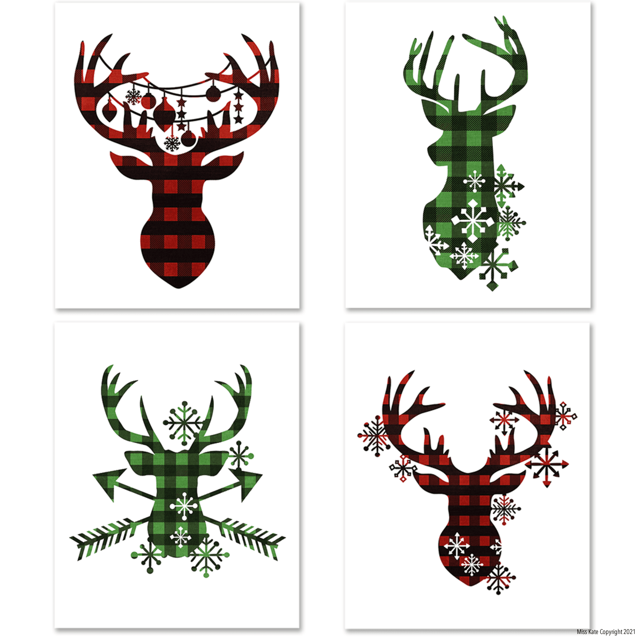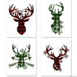 The Red & Green Buffalo Check Reindeer Heads - 8x10 Christmas Prints feature four Reindeer silhouettes made from our Red & Black Buffalo Check and Merry Christmas patterns.