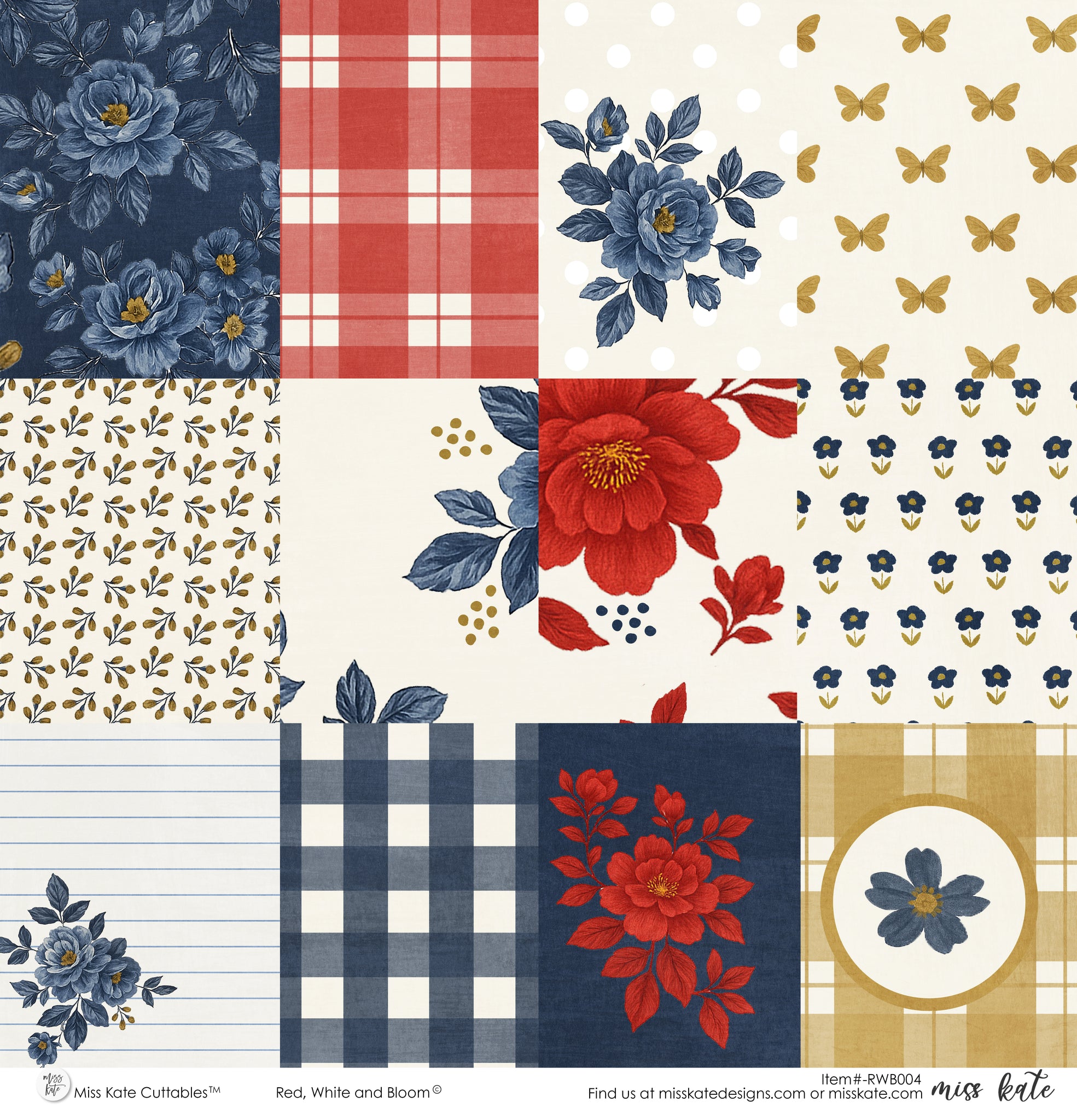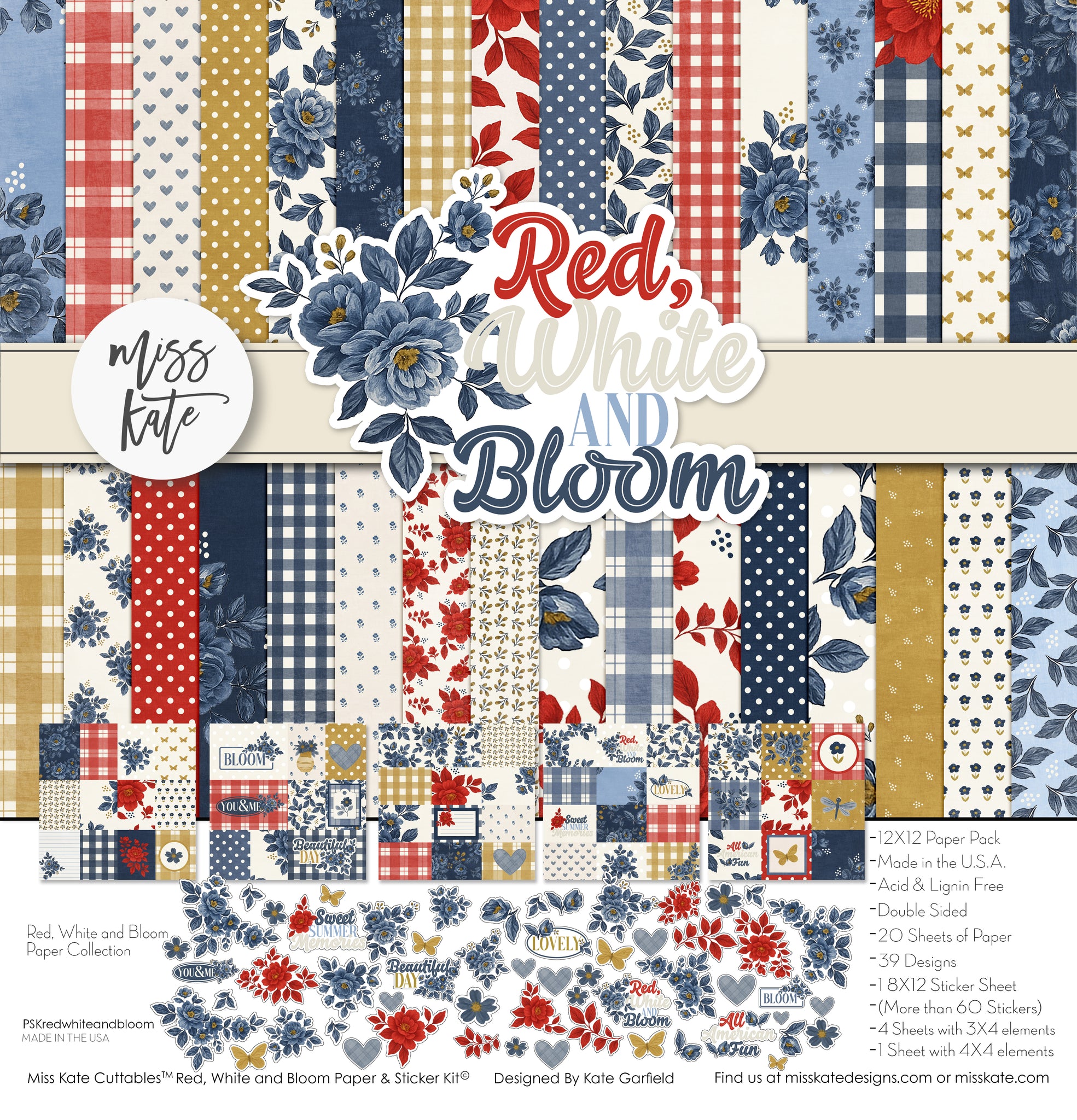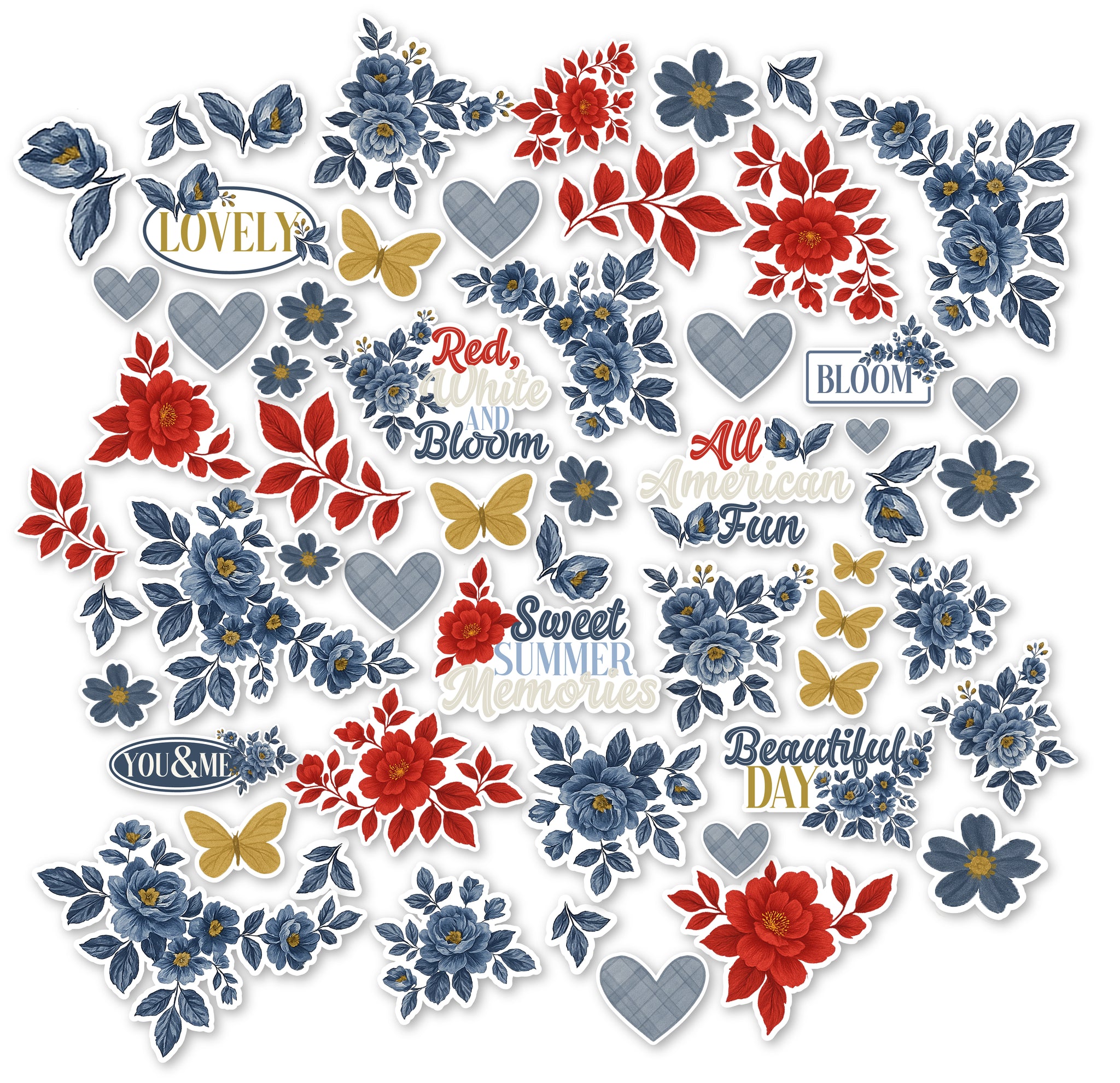 Celebrate Americana charm with the Red, White and Bloom Paper Collection. This vibrant and timeless collection features a palette of deep navy, classic red, soft ivory, and warm mustard gold. The kit offers 39 unique designs across 20 double-sided 12"x12" sheets, blending bold florals, playful polka dots, ginghams, stripes, and delicate patterns. Coordinating elements include a 12"x12" sticker sheet with over 60 stickers. The floral motifs, vintage-inspired checks, and whimsical icons like butterflies and hearts make this kit perfect for scrapbooking, card making, home décor, party crafting, and more. The designs are acid and lignin free, made in the USA, and ideal for lasting keepsakes. Whether you’re capturing summer memories, patriotic celebrations, or simply adding a cozy, vintage feel to your projects, Red, White and Bloom delivers creativity and inspiration in every sheet. |