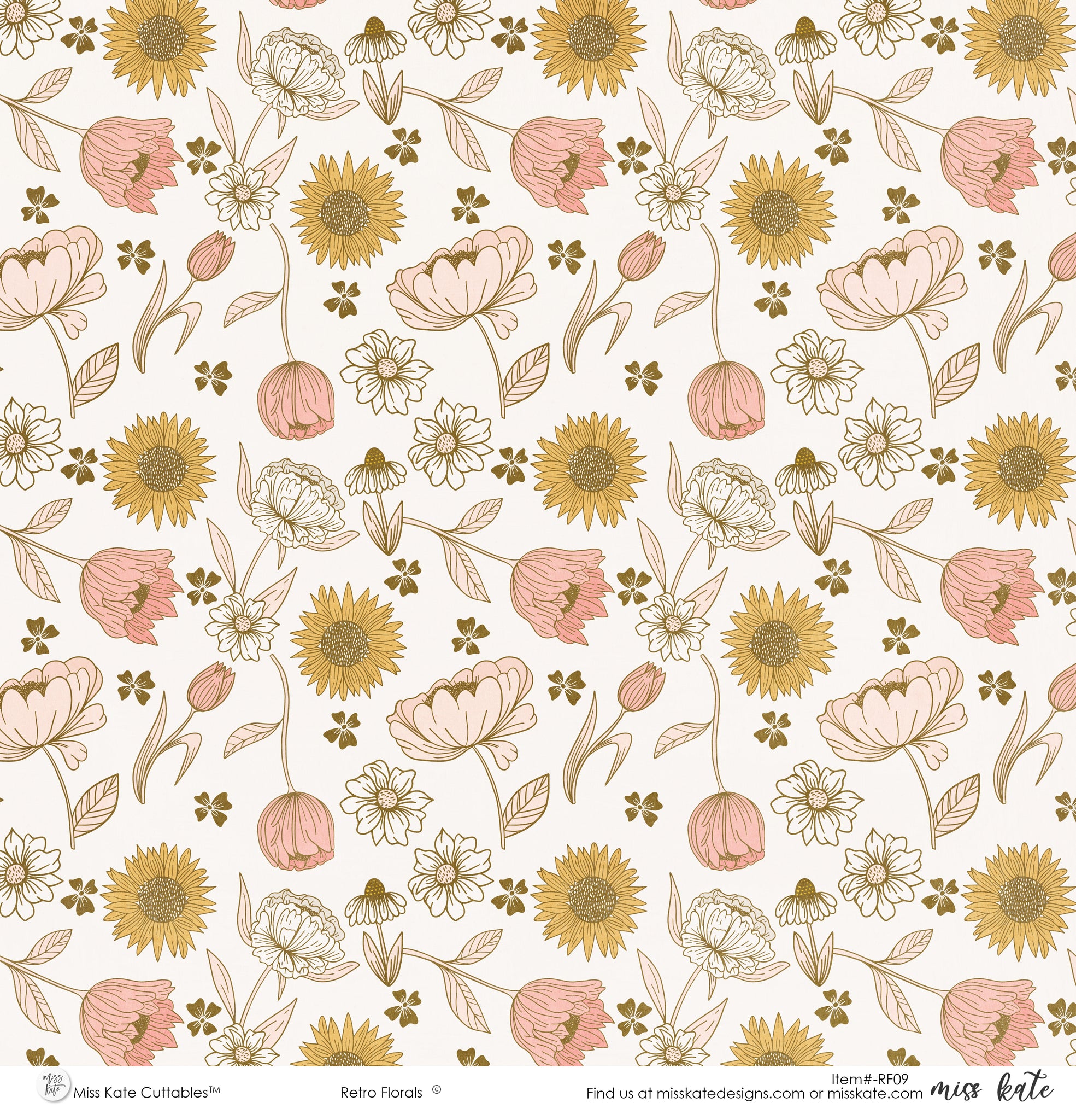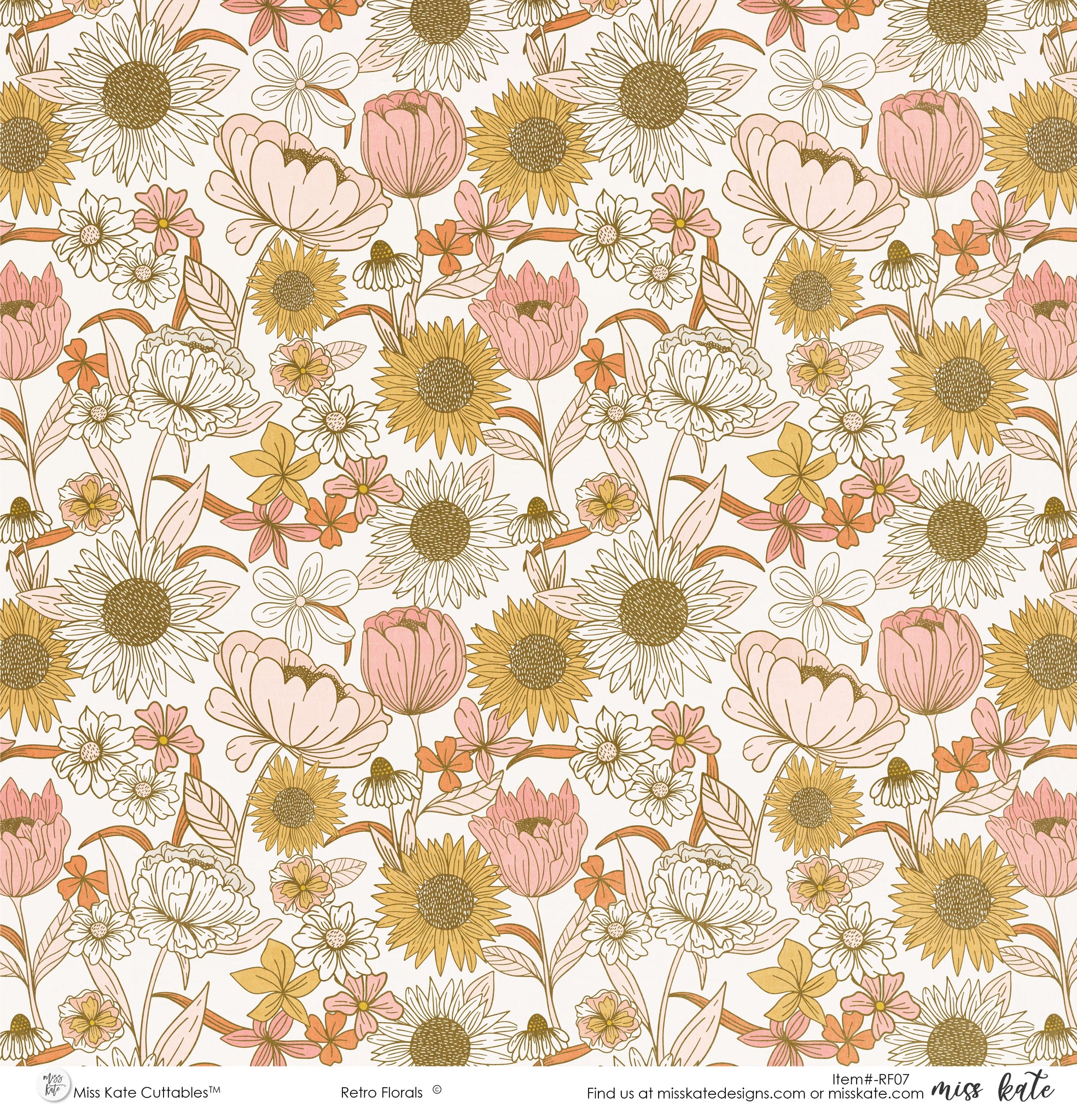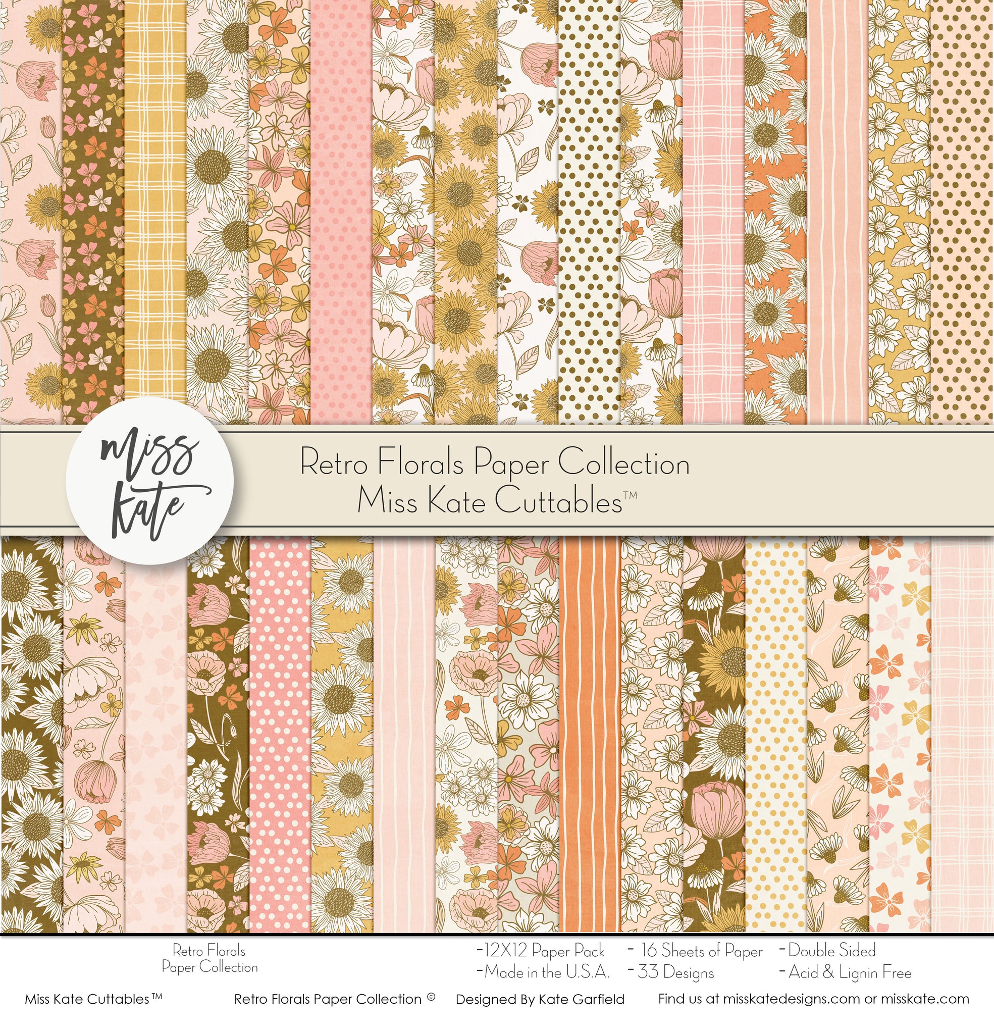 The Double Sided Retro Florals Paper Pack has a wide variety of designs, including lots of 70's inspired flowers, plaids, stripes, and polka dots