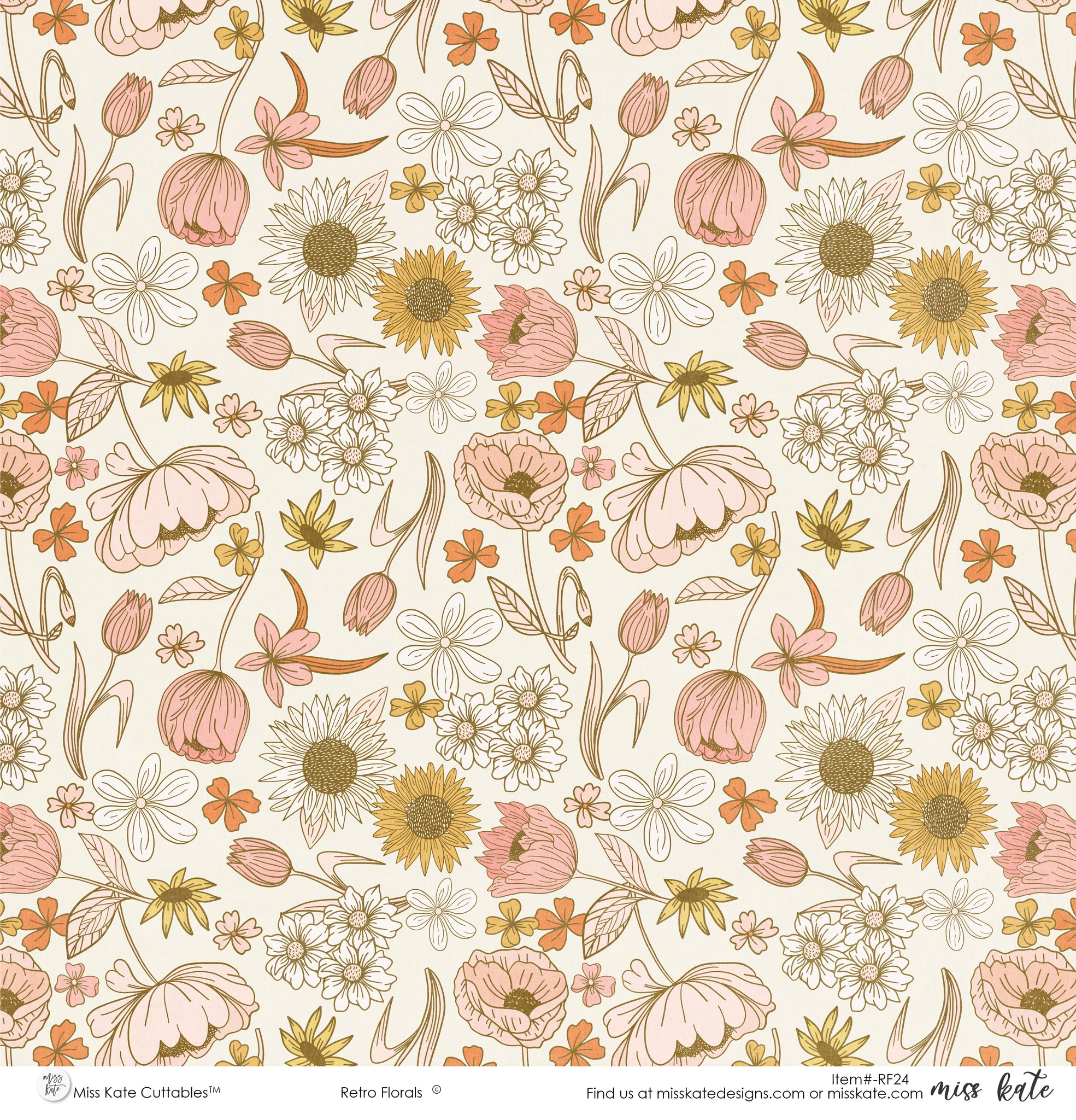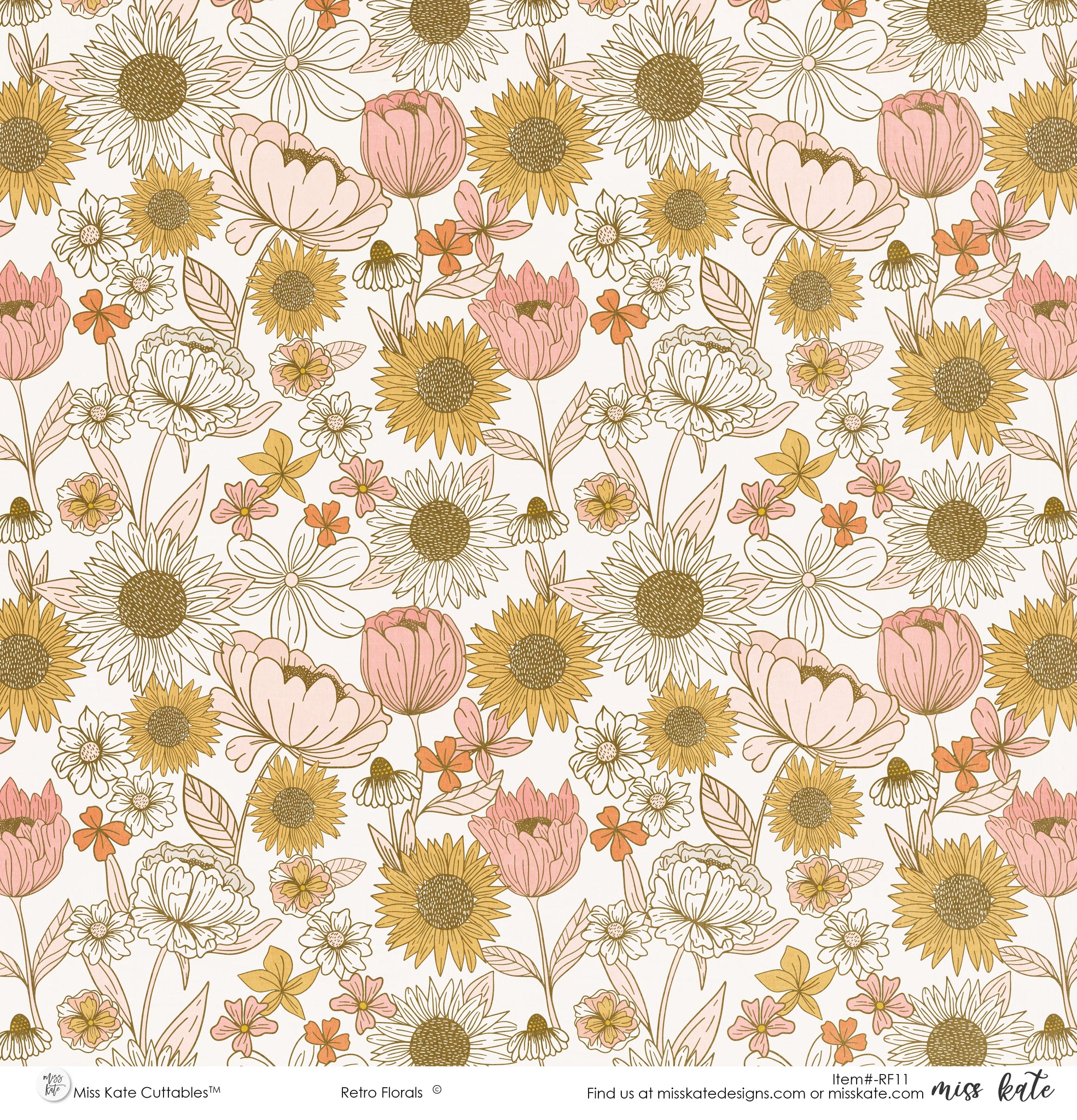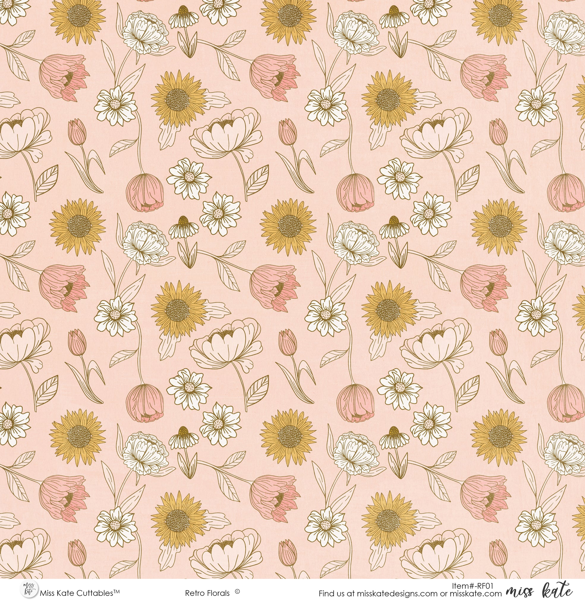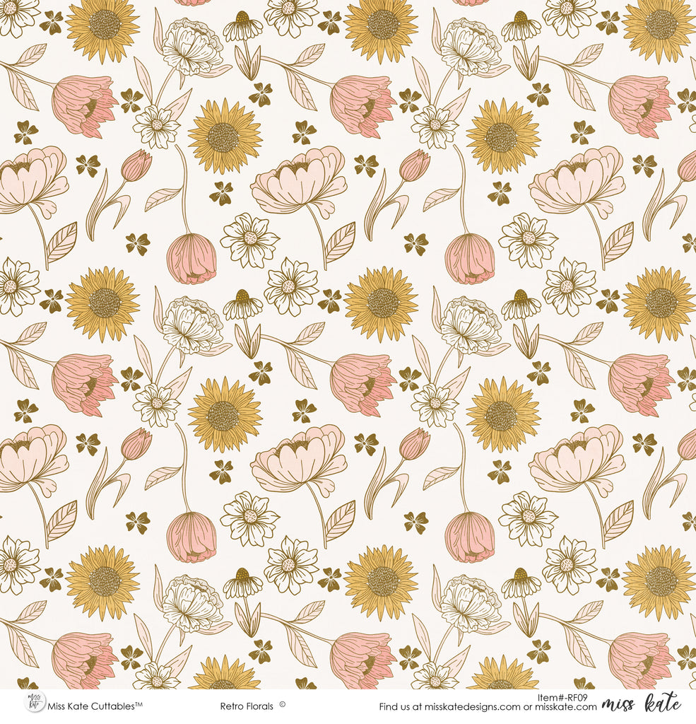 The Double Sided Retro Florals Paper Pack has a wide variety of designs, including lots of 70's inspired flowers, plaids, stripes, and polka dots