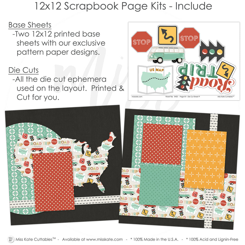 About our Page Kits Our Page Kits include proprietary Miss Kate Pattern Paper and Miss Kate Die Cuts. The cover page features full-color high-resolution pictures of the assembled layouts. Die cuts are left in the sheet and ready for you to easily pop out, this allows you to see them all spread out and helps prevent any accidental loss. These page kits are adorable, easy to do, and at such a great price! We love our Page Kits and think you will too! |