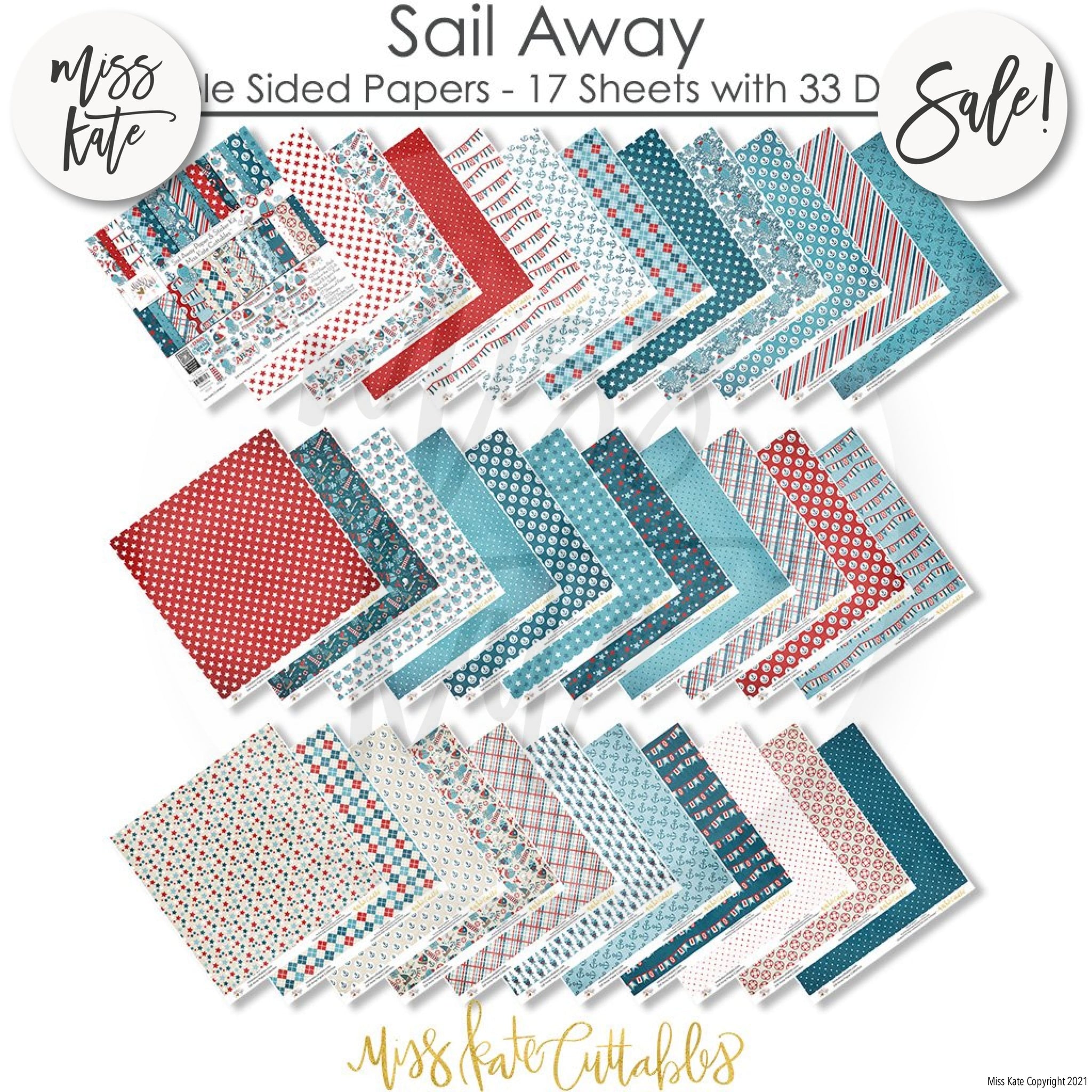 The Sail Away Double-Sided Paper has a wide variety of Patterns including Polka Dots, Stripes, Lobsters, and Octopuses, Anchor, Plaids, Stars, Life Ring, Banners.