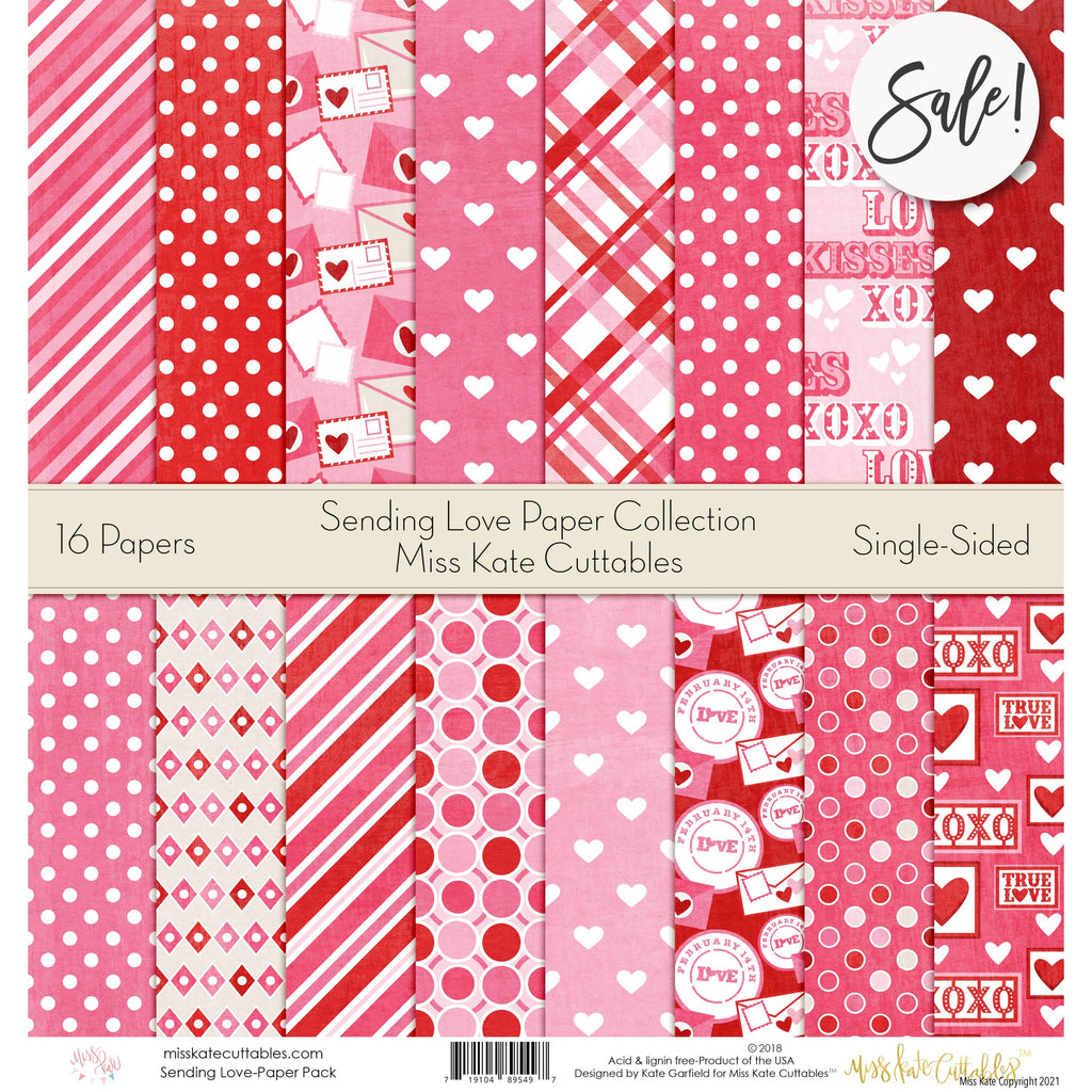 The Sending Love Paper Pack has a wide variety of Patterns including Polka Dots, Stripes, Plaid, Wrapping Paper, Banners, Hearts, Valentine, XOXO, True Love, Love Letters, Pink, White, Red. Valentines Day Romance Wedding Theme
