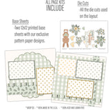 What to expect with our Page KitsWhen you open your kit, you will discover and love that all of the pattern paper designs are pre printed and completed for you! No more cutting long strips of pattern paper and gluing them together.