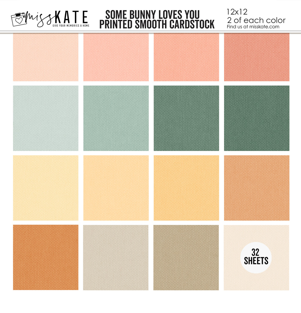 Cardstock Description Single-Sided Linen-Printed Smooth Cardstock Kate created 16 custom colors that perfectly match our Some Bunny Loves You designs, added her exclusive Linen Pattern, and combined them for you in this 32 sheet pack. Colors Match It has NEVER been this easy to match cardstock with paper! About our Paper Our cardstock sheets provide a stiff, strong surface to work on that has a linen feel. You will find that it cuts beautifully in your Cricut, Cameo, or any other cutting machine. It is perfect for backgrounds, die cuts, photo mats, and any other crafting project. We love our Linen Printed Card Stock and think you will too! THEME: Easter, Spring |
