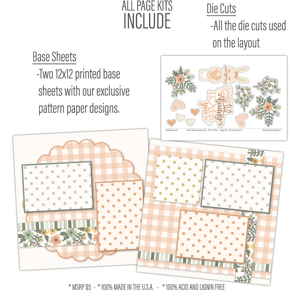 About our Page Kits Our Page Kits include proprietary Miss Kate Pattern Paper and Miss Kate Die Cuts. The cover page features full-color high-resolution pictures of the assembled layouts. Die cuts are left in the sheet and ready for you to easily pop out, this allows you to see them all spread out and helps prevent any accidental loss. These page kits are adorable, easy to do, and at such a great price! We love our Page Kits and think you will too! |