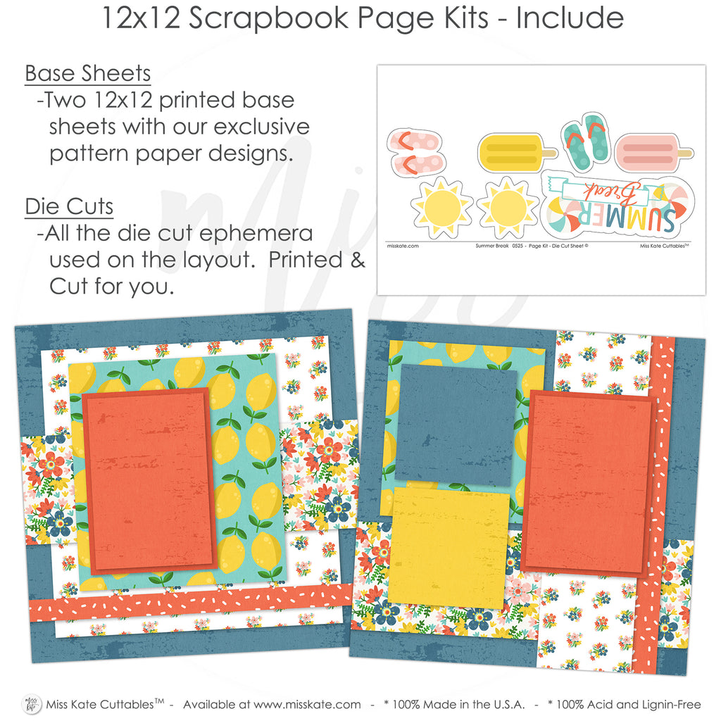 What to Expect:• Two 12x12 Printed Base Sheets (with Photo Mats Included)• Die cuts: Pre-cut for you and ready to use |