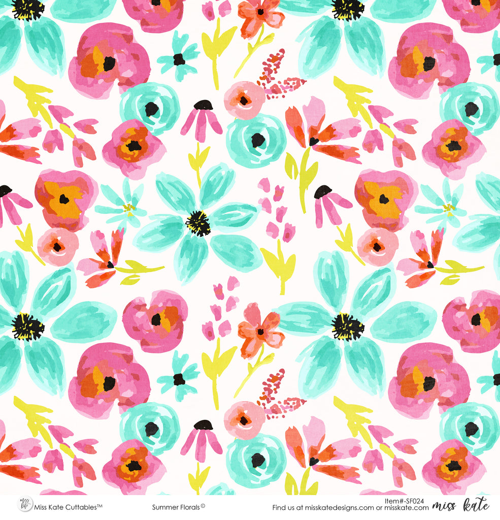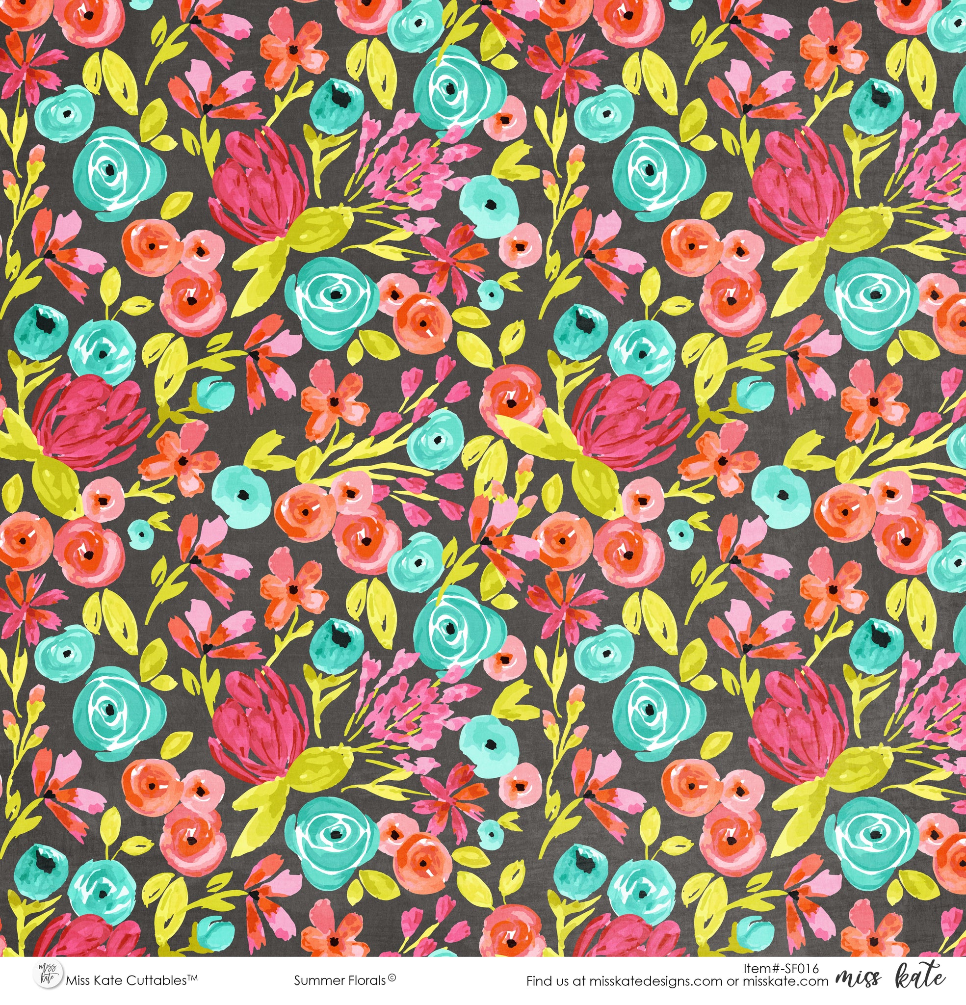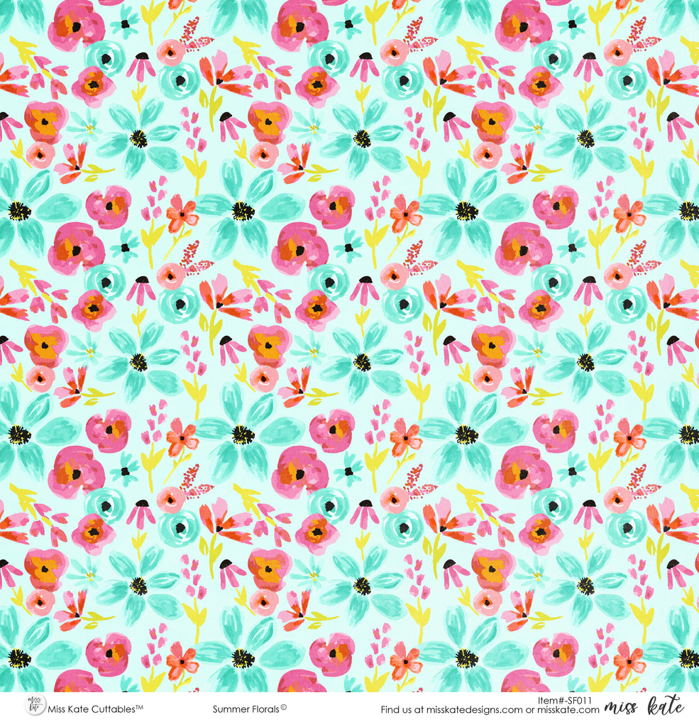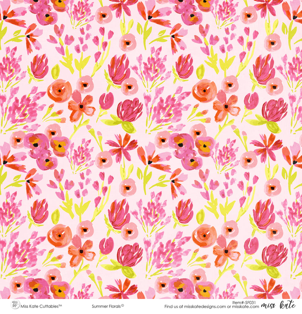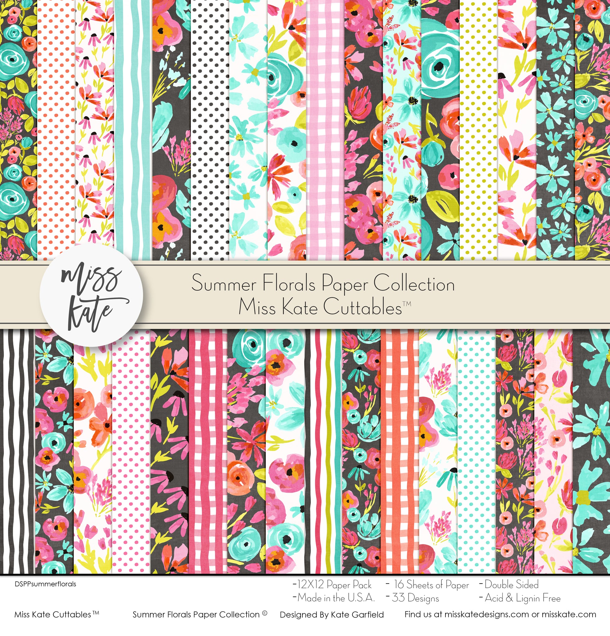 The Double Sided Summer Florals Paper Pack has a wide variety of designs, including Watercolor Flowers, Polka dots, Plaid, and lots of bright colors.