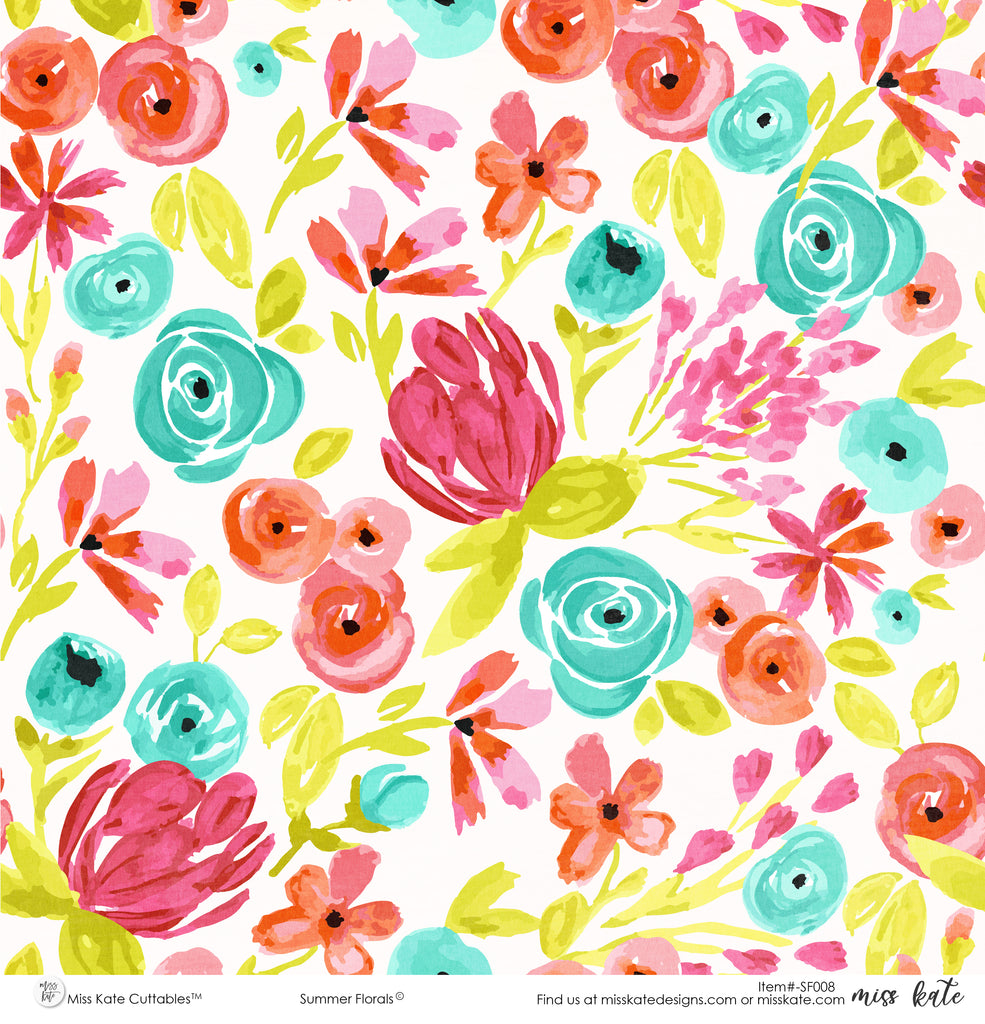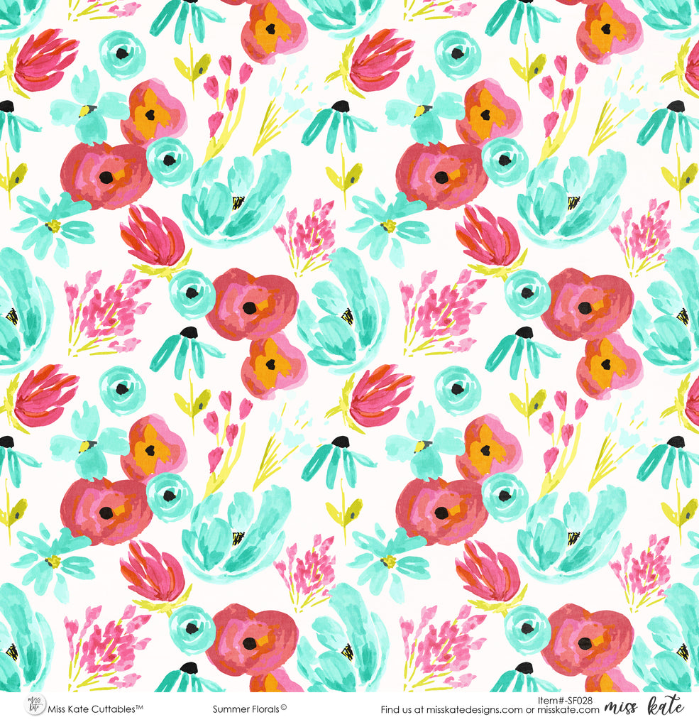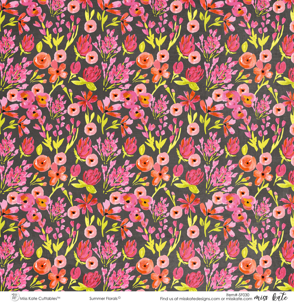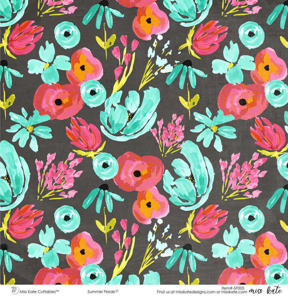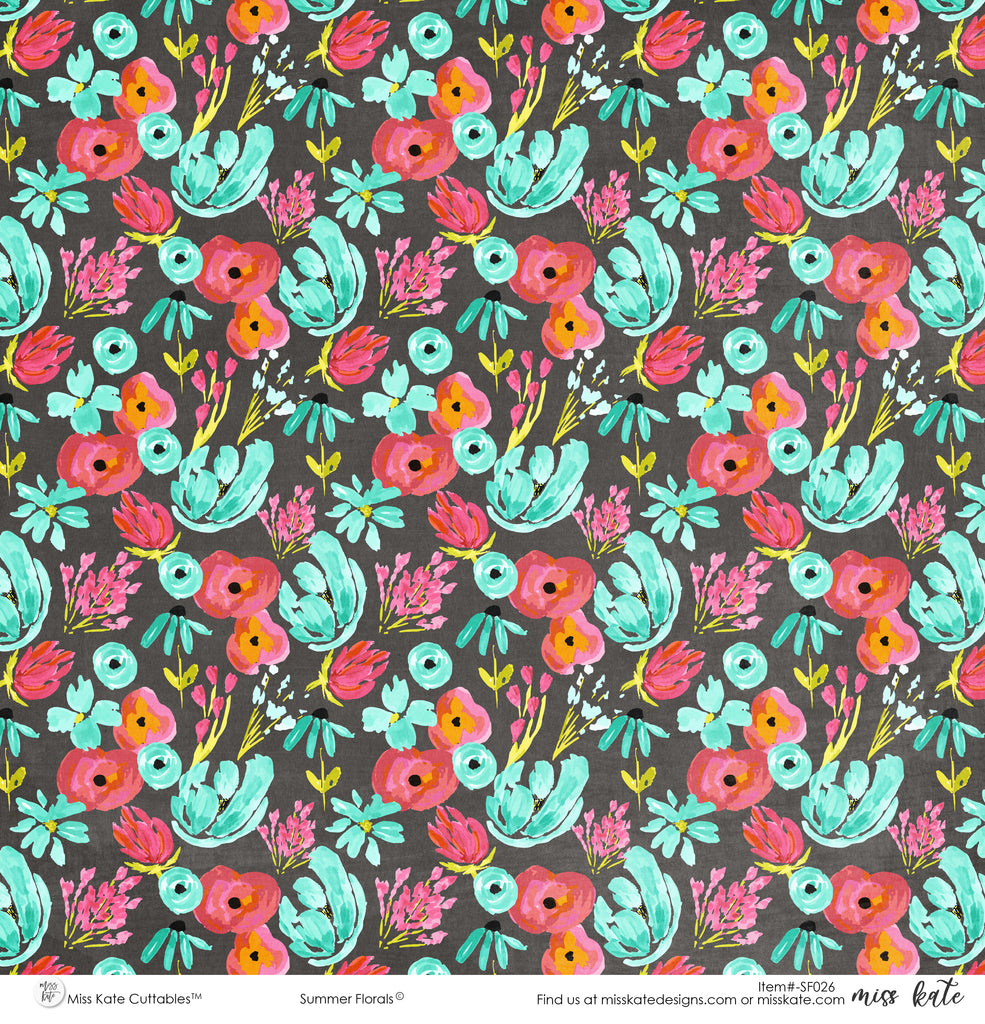 The Double Sided Summer Florals Paper Pack has a wide variety of designs, including Watercolor Flowers, Polka dots, Plaid, and lots of bright colors.