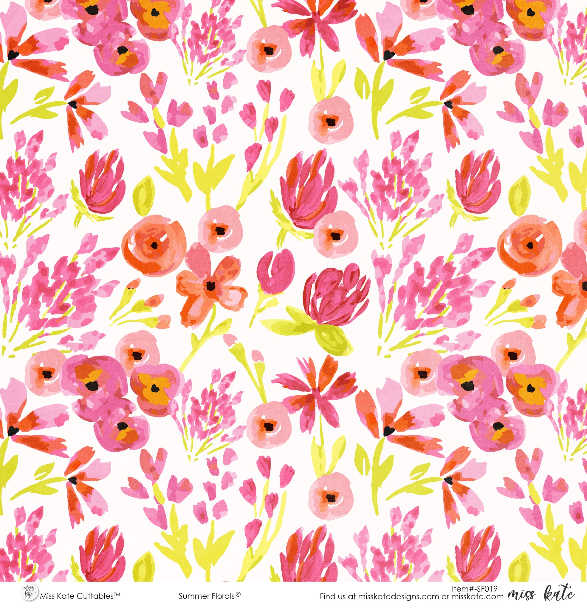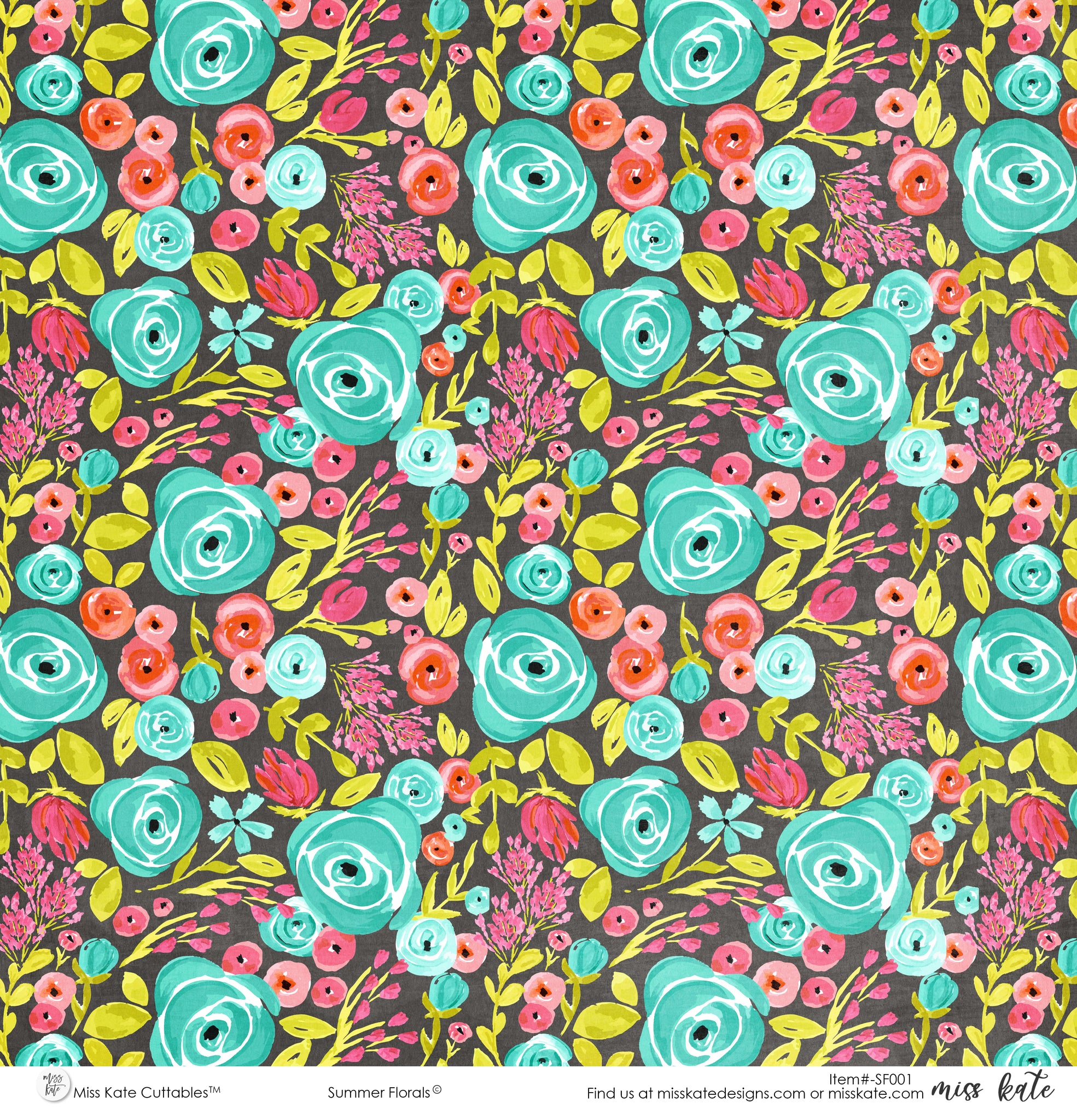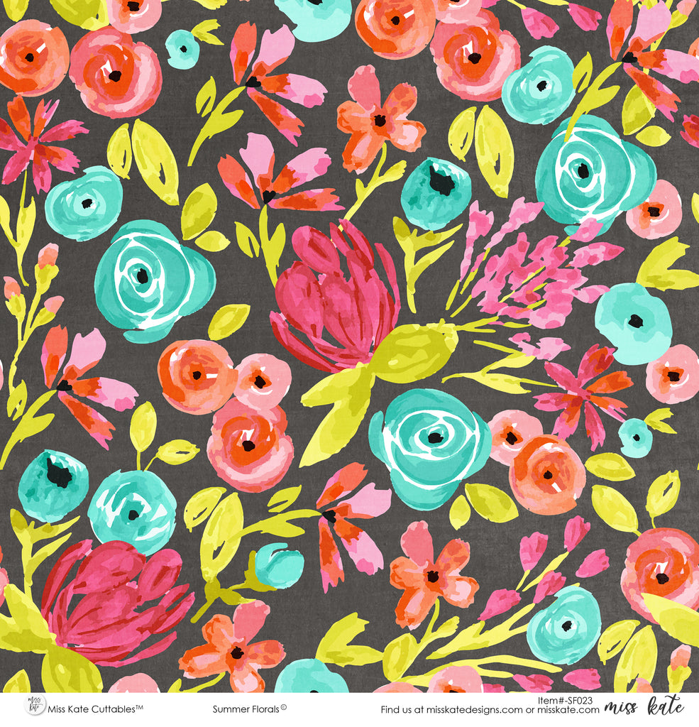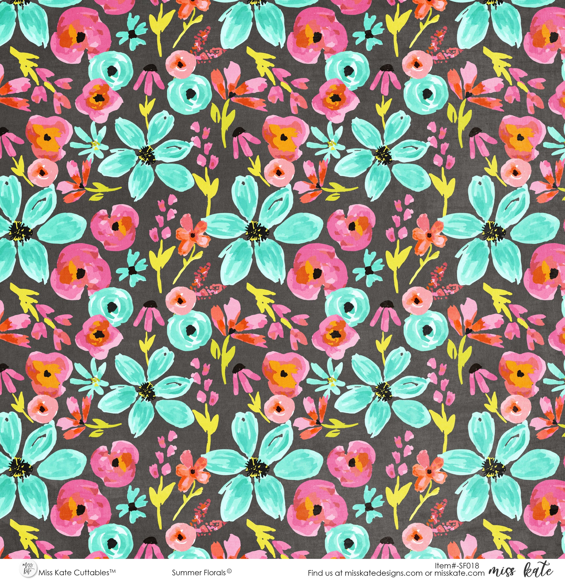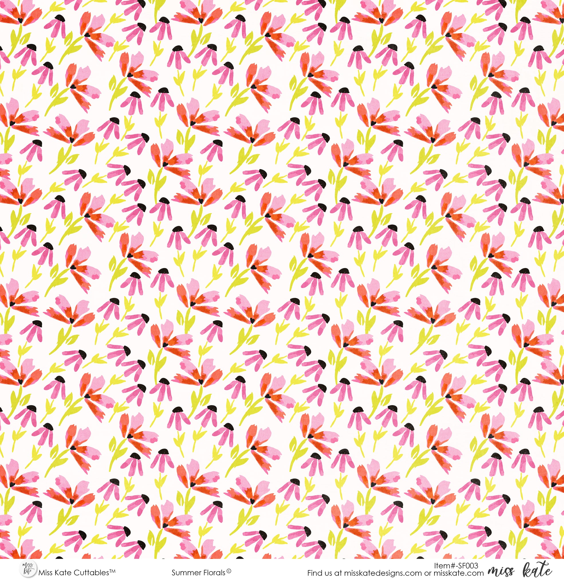 The Double Sided Summer Florals Paper Pack has a wide variety of designs, including Watercolor Flowers, Polka dots, Plaid, and lots of bright colors.