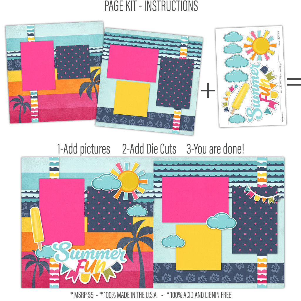 About our Page Kits Our Page Kits include proprietary Miss Kate Pattern Paper and Miss Kate Die Cuts. The cover page features full-color high-resolution pictures of the assembled layouts. Die cuts are left in the sheet and ready for you to easily pop out, this allows you to see them all spread out and helps prevent any accidental loss. These page kits are adorable, easy to do, and at such a great price! We love our Page Kits and think you will too! |