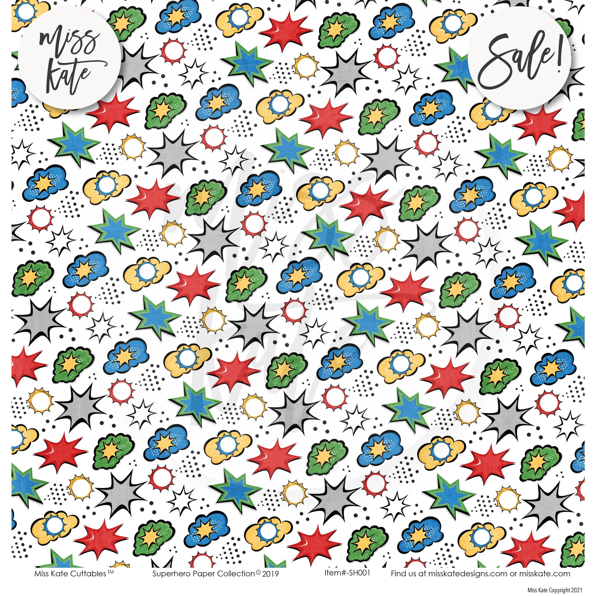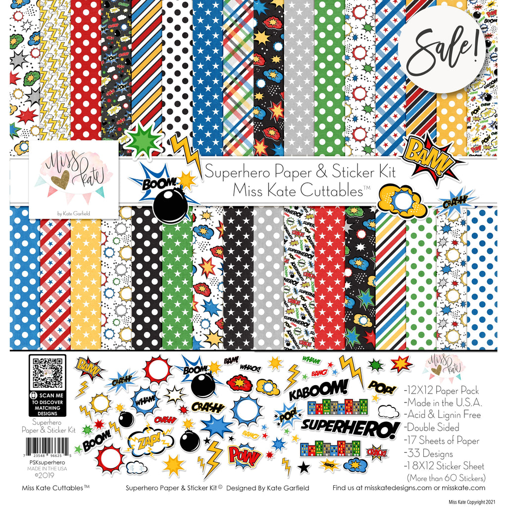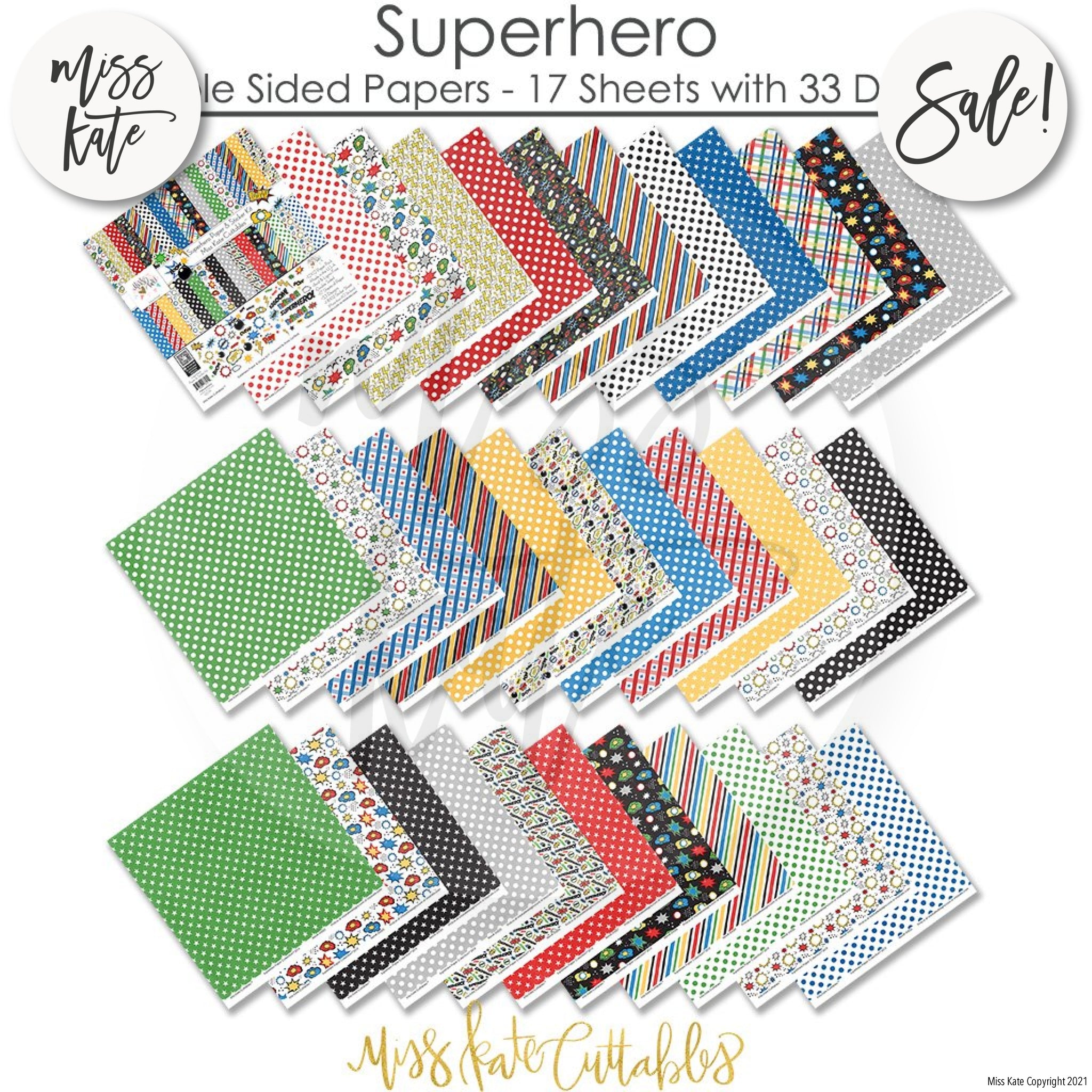 The Superhero Cute Double-Sided Paper has a wide variety of Patterns including