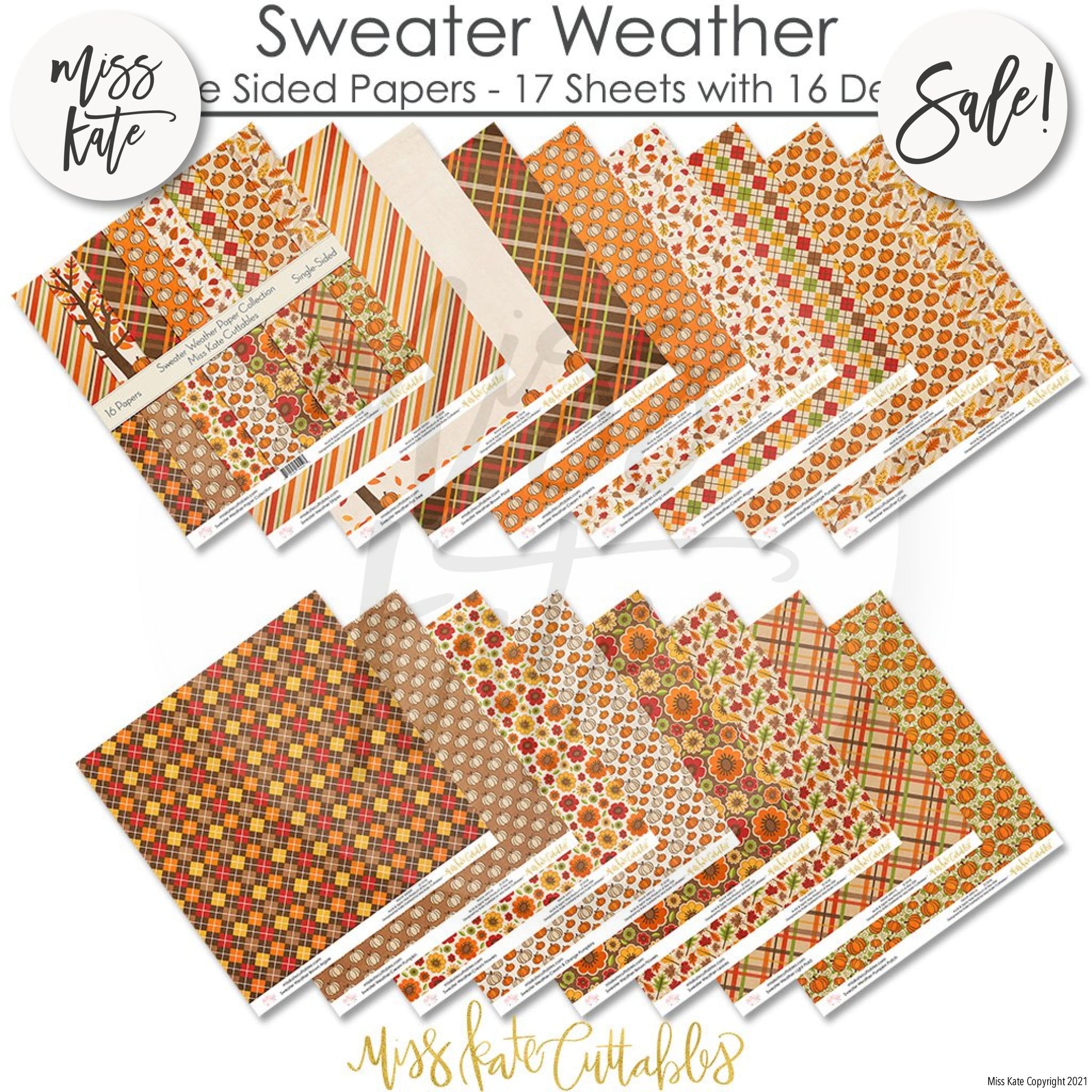 The Sweater Weather Paper Pack has a wide variety of Patterns Dots, Stripes, Plaid, Check, Flowers, Pumpkins, Trees, Acorns, Sunflower, Fall, and Autumn, Halloween Season Theme