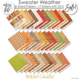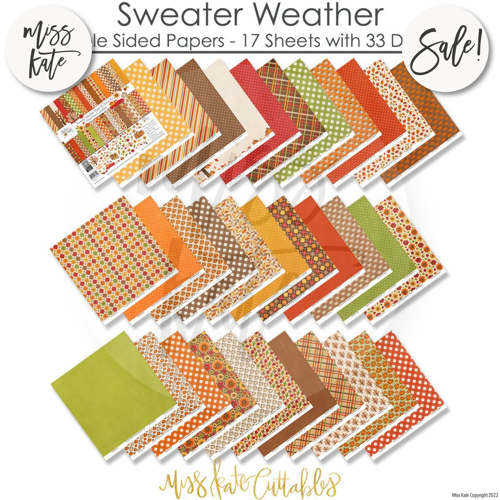The Sweater Weather Double-Sided Paper has a wide variety of Patterns including Polka Dots, Stripes, Tree, Plaid, Pumpkins, Autumn Leaves, Leaves, Fall Floral. Solid Backgrounds.