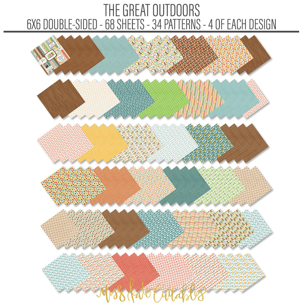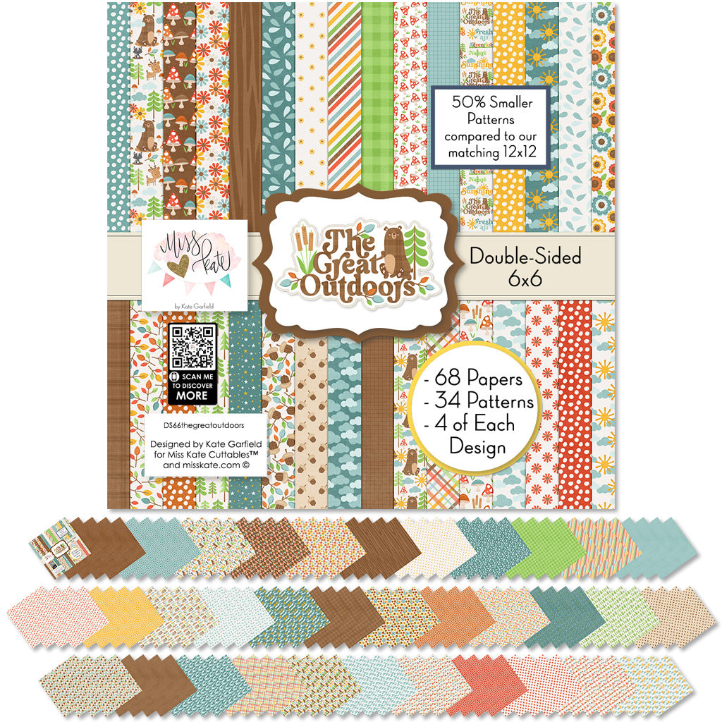 The Great Outdoors 6x6 Paper Pack by Miss Kate is a fun and nature-inspired collection featuring a rich palette of earthy browns, deep greens, warm oranges, soft blues, and golden yellows. This double-sided set includes 34 unique patterns that capture the essence of the outdoors with wood textures, camping motifs, playful bears, mushrooms, pine trees, clouds, plaids, florals, polka dots, and stripes. The designs bring a rustic yet whimsical charm, making them ideal for camping, hiking, adventure, and nature-themed crafting projects. The 6x6-inch size is perfect for scrapbooking, card making, mini albums, journaling, and DIY embellishments. The smaller scaled patterns work wonderfully for backgrounds, layering, die-cut shapes, and decorative accents. Whether creating camping trip memory pages, adventure-themed greeting cards, or custom tags for nature-inspired gifts, this collection adds a warm and playful touch to any project. With 68 sheets total (four of each design), this versatile set ensures ample variety for multiple creative uses. |