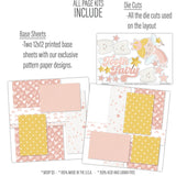 What to expect with our Page KitsWhen you open your kit, you will discover and love that all of the pattern paper designs are pre printed and completed for you! No more cutting long strips of pattern paper and gluing them together.