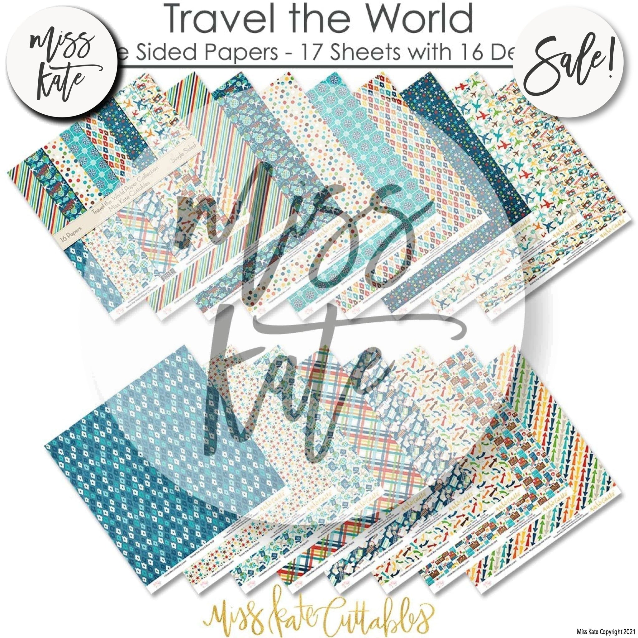 Travel the World PP has a variety of shapes: Polka dots stripes argyle airplanes suitcase clouds direction arrows