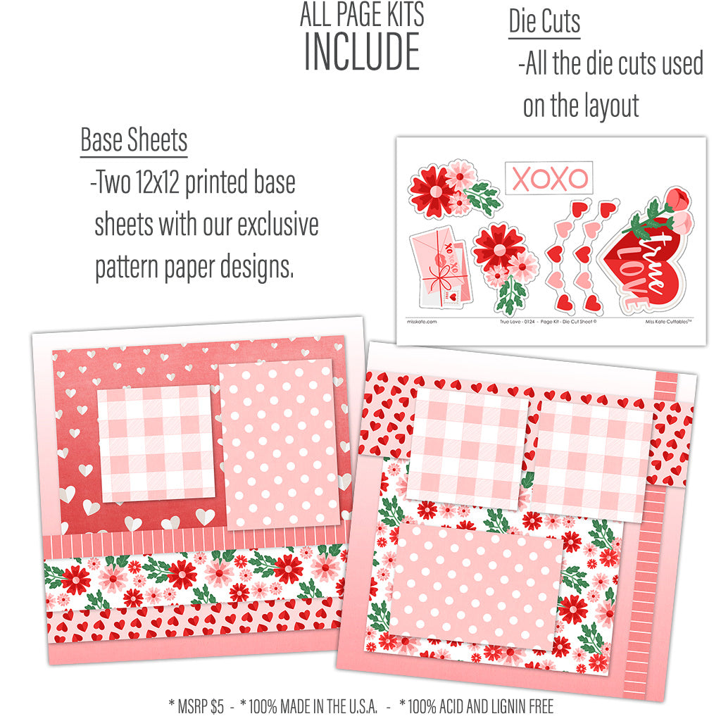 About our Page Kits Our Page Kits include proprietary Miss Kate Pattern Paper and Miss Kate Die Cuts. The cover page features full-color high-resolution pictures of the assembled layouts. Die cuts are left in the sheet and ready for you to easily pop out, this allows you to see them all spread out and helps prevent any accidental loss. These page kits are adorable, easy to do, and at such a great price! We love our Page Kits and think you will too! |
