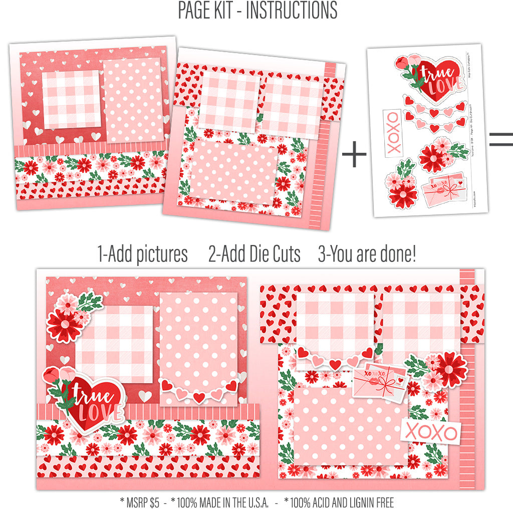 What to expect with our Page KitsWhen you open your kit, you will discover and love that all of the pattern paper designs are pre printed and completed for you! No more cutting long strips of pattern paper and gluing them together.