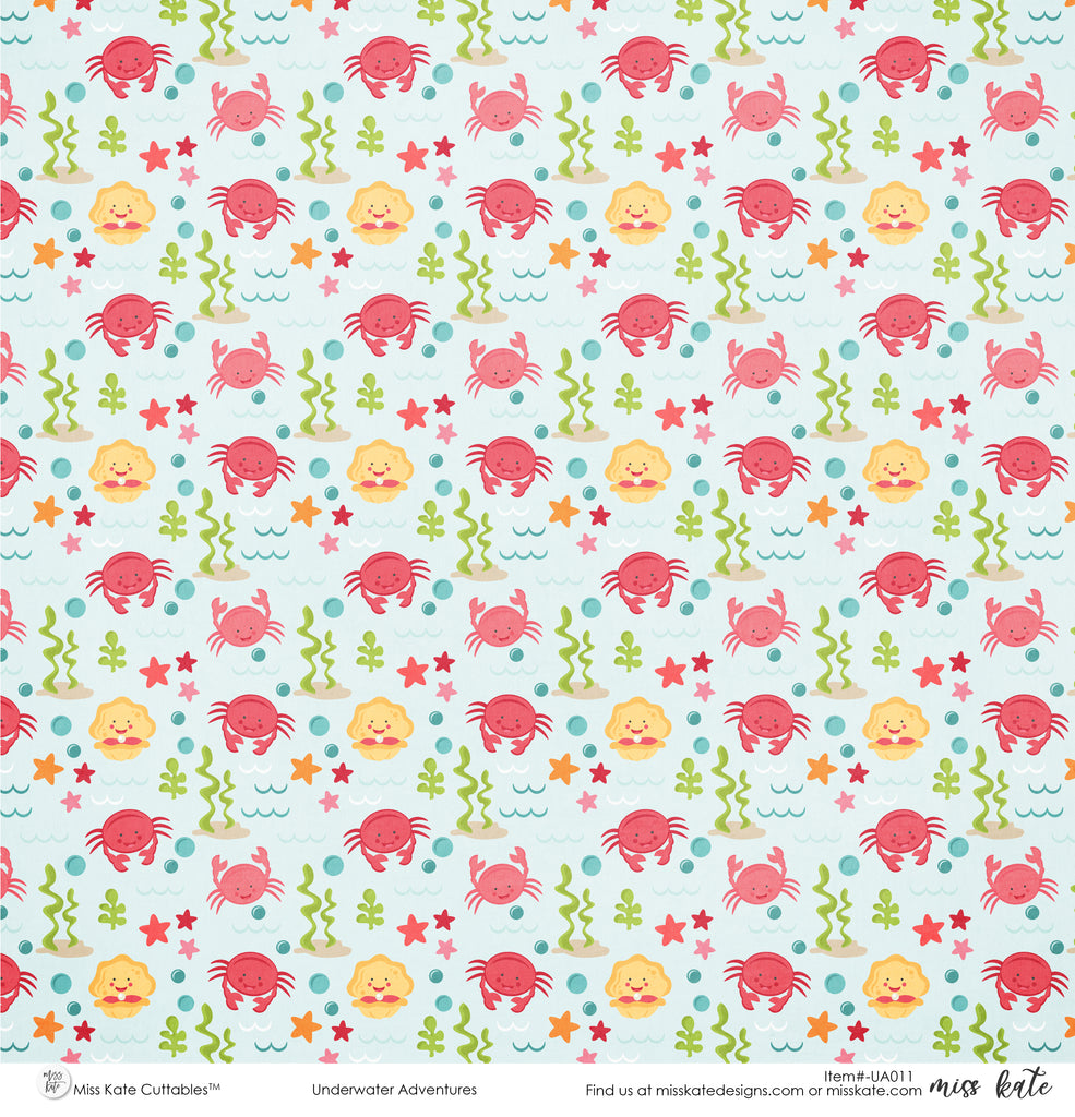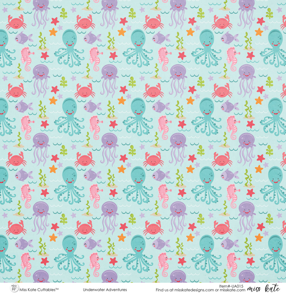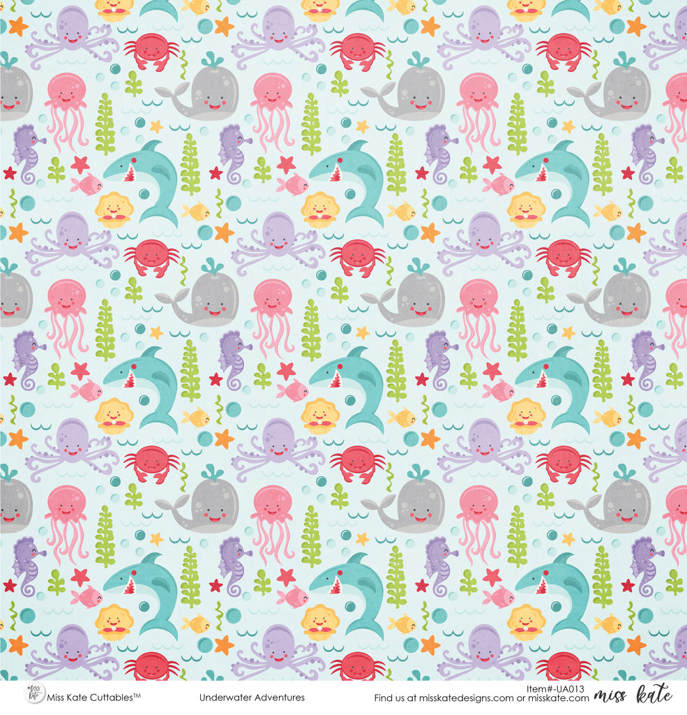 Underwater Adventures Single-Sided Paper- has a wide variety of patterns including polka dots, plaid, stripes, sharks, octopus, crabs, seahorses, bubbles, fish, and more!