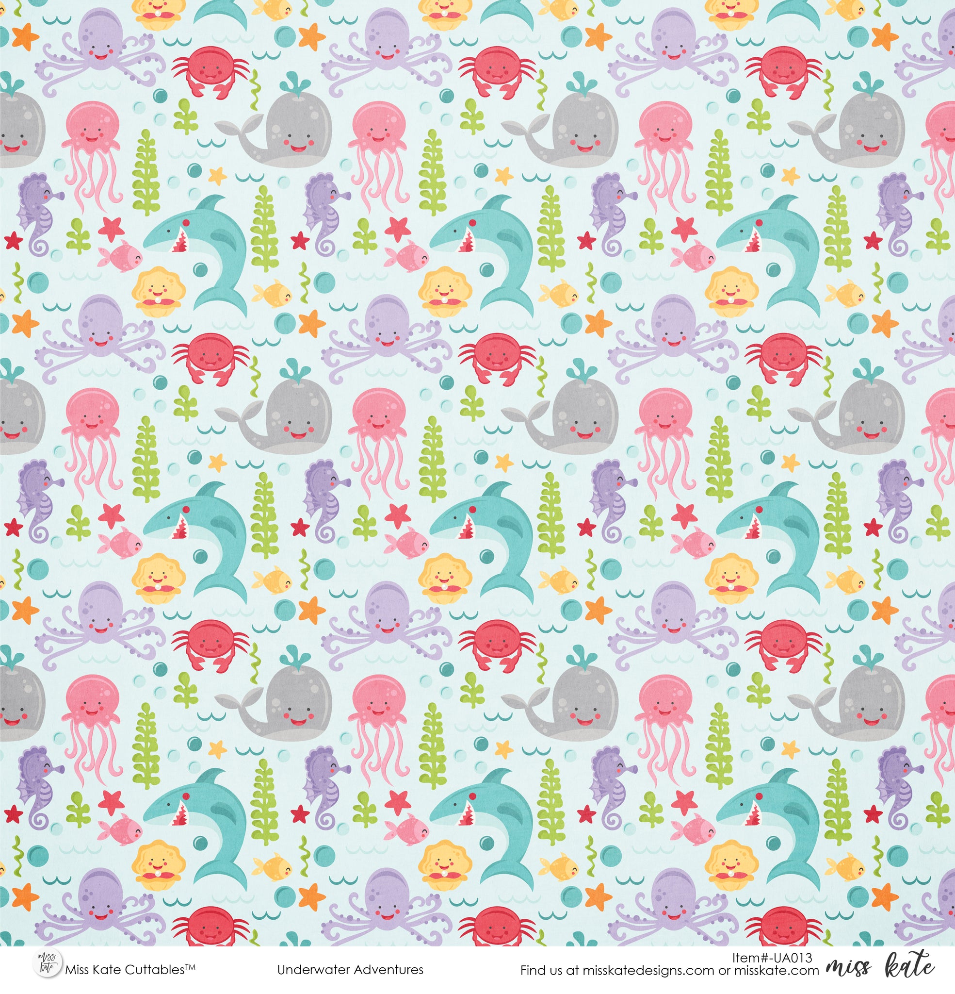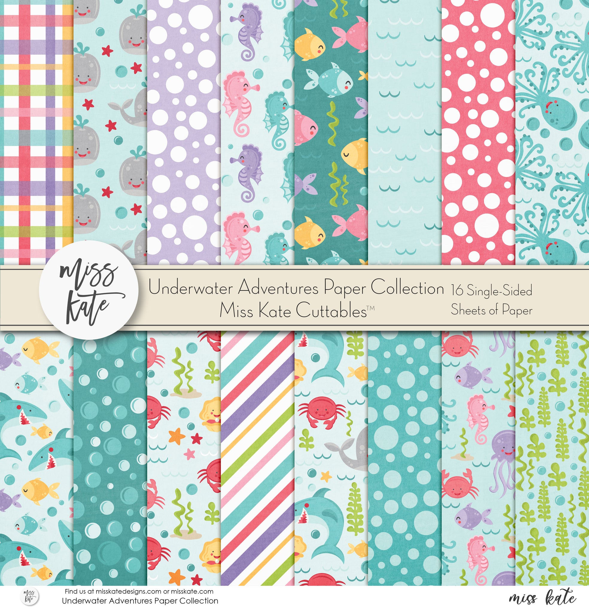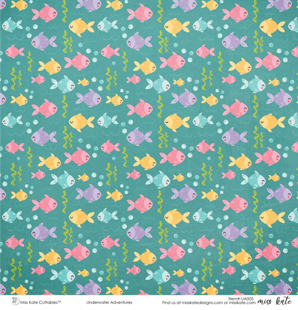 Underwater Adventures Single-Sided Paper- has a wide variety of patterns including polka dots, plaid, stripes, sharks, octopus, crabs, seahorses, bubbles, fish, and more!