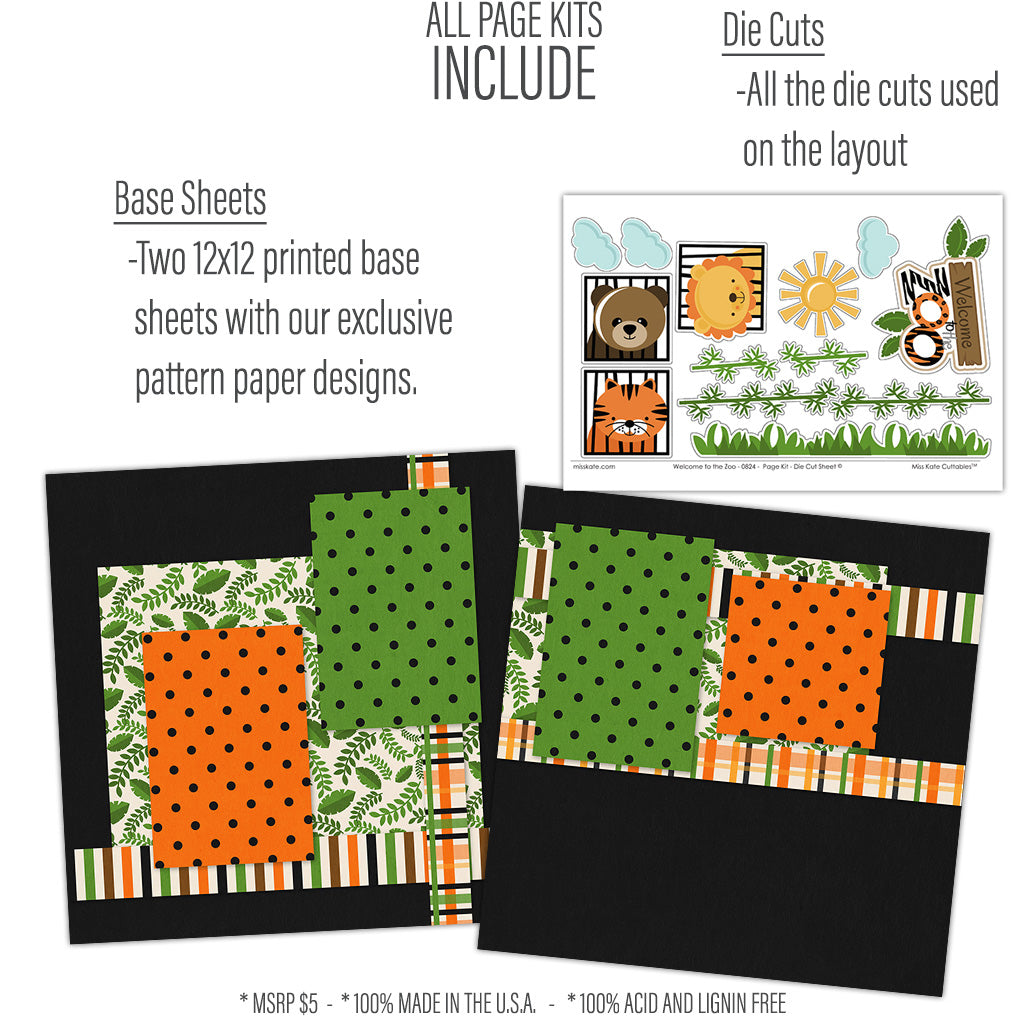 About our Page Kits Our Page Kits include proprietary Miss Kate Pattern Paper and Miss Kate Die Cuts. The cover page features full-color high-resolution pictures of the assembled layouts. Die cuts are left in the sheet and ready for you to easily pop out, this allows you to see them all spread out and helps prevent any accidental loss. These page kits are adorable, easy to do, and at such a great price! We love our Page Kits and think you will too! |
