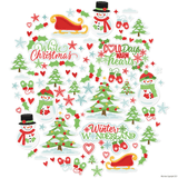 The White Christmas Die Cut Pack has a wide variety of designs including Titles "White Christmas" "Cold Days Warm Hearts" "Winter Wonderland." Shapes include Sleigh, Snowmen, Mistletoe, Snow covered pine tree, Christmas tree, Mittens, Hearts, Stars Clouds, Snowflakes.