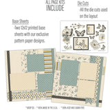 What to expect with our Page KitsWhen you open your kit, you will discover and love that all of the pattern paper designs are pre printed and completed for you! No more cutting long strips of pattern paper and gluing them together.