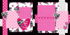 Base Sheets: Two 12x12 printed base sheets with our exclusive original pattern paper designs. Black background with tiny pink hearts, white background with raccoons holding pink hearts, pink grid pattern, pink background with white hearts, white background with pink and black hearts.